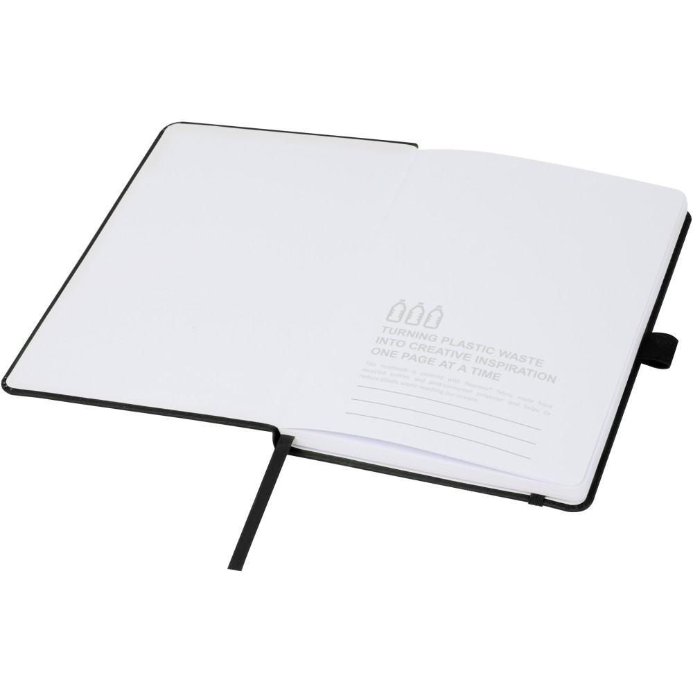 A Thalaasa jegyzetfüzet poliészter borítója a tengerparti területekről begyűjtött, óceánba került műanyagból készült. Ez fenntarthatóbb választássá teszi ezt a füzetet, mivel segít csökkenteni a műanyaghulladékot. 80 vonalas lapot tartalmaz 80 g/m2 újrahasznosított papírból, tollhurokkal, gumis záródással, könyvjelzővel és harmonikazsebbel. Emblémázás: Szitanyomás, UV nyomtatás