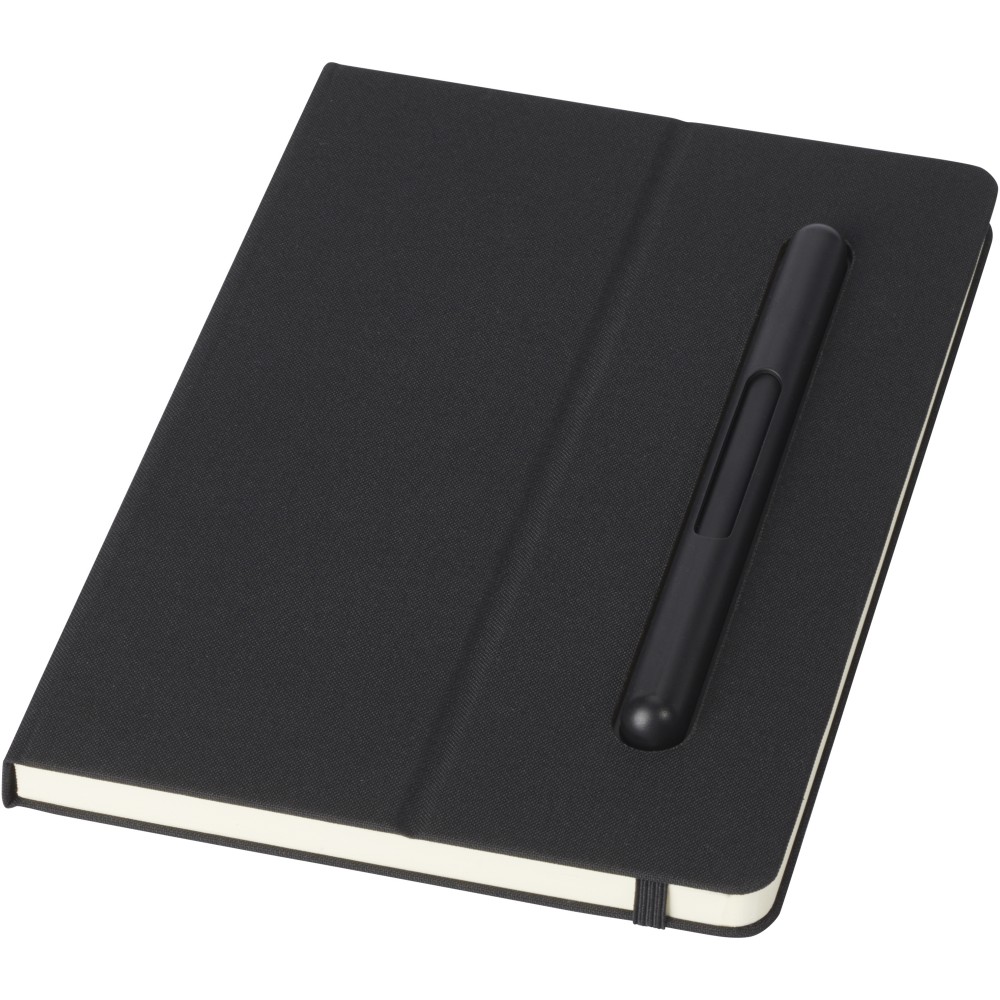 Az RCS tanúsítvánnyal rendelkező Skribi toll- és jegyzetfüzetkészlet részben újrahasznosított poliészterből készül, így fenntartható választás, mivel segít csökkenteni az új nyersanyag felhasználását. Kék tintával ellátott golyóstollat és 80 krémszínű, vonalas lapot tartalmaz, amelyek 80 g/m2 súlyú, fenntartható forrásból származó, újrahasznosított papírból készültek. A toll írási hossza 1000 méter. Emblémázás: Szitanyomás