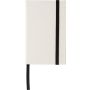 Újrahasznosított tejesdobozból készült A6-ös jegyzetfüzet 80 lappal, gumiszalaggal és könyvjelzővel. 70%-ban újrahasznosított tejeskartonból és 30%-ban újrahasznosított papírból készült. Igazolóbélyegző a füzet hátuljának az alján. Emblémázás: Tamponnyomás, UV nyomtatás