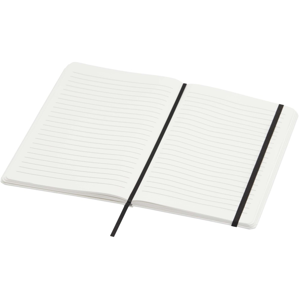 A Holm A5 keményfedeles jegyzetfüzet 80 vonalas, 120 g/m2 súlyú kőpapírlapot tartalmaz, amely simább és fenntarthatóbb írásélményt biztosít. A kőpapír 100%-ban mentes a hagyományos fa alapú papírtól, és a gyártási folyamat kevesebb energiát igényel, mint az újrahasznosított vagy új cellulózpapír. Emblémázás: Tamponnyomás, UV nyomtatás