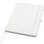 A Teak A5 méretű, újrahasznosított karton keménytáblás jegyzetfüzet lekerekített sarkokkal nemcsak irodai alapdarab, hanem kiváló lehetőség a márka népszerűsítésére is. A jegyzetfüzet 96 darab 70 g/m2-es vonalas lapot tartalmaz és puha tapintású borítóval rendelkezik. Beépített tolltartó hurokkal, rugalmas zárópánttal és könyvjelzővel van ellátva. Emblémázás: Tamponnyomás, UV nyomtatás