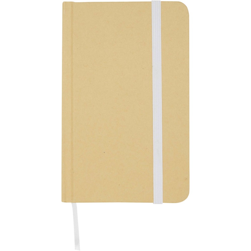 A Reed A6 méretű, újrahasznosított karton keménytáblás jegyzetfüzet lekerekített sarkokkal nemcsak irodai alapdarab, hanem kiváló lehetőség a márka népszerűsítésére is. A jegyzetfüzet 96 darab 70 g/m2-es üres lapot tartalmaz, és puha tapintású borítóval rendelkezik. Rugalmas zárópánttal és szalagkönyvjelzővel van ellátva. Emblémázás: Tamponnyomás, UV nyomtatás