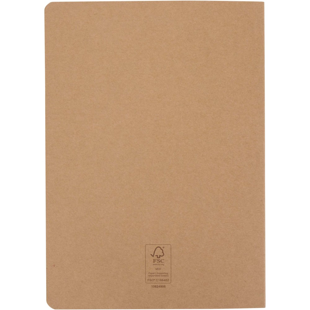 A Slyk A5 jegyzetfüzet minimalista kraft karton borítóval rendelkezik, lekerekített sarkokkal és látható gerincvarrással, ami kézműves hatást kölcsönöz. 32 krémszínű, pontozott lapot tartalmaz, amelyek 70 g/m2 papírból készültek. Kompakt A5-ös mérete miatt praktikus választás útközbeni jegyzeteléshez, és könnyen elfér a legtöbb táskában. Vonalazott és tervezőlapos változatban is elérhető. Emblémázás: Matricázás, Szitanyomás, Tamponnyomás