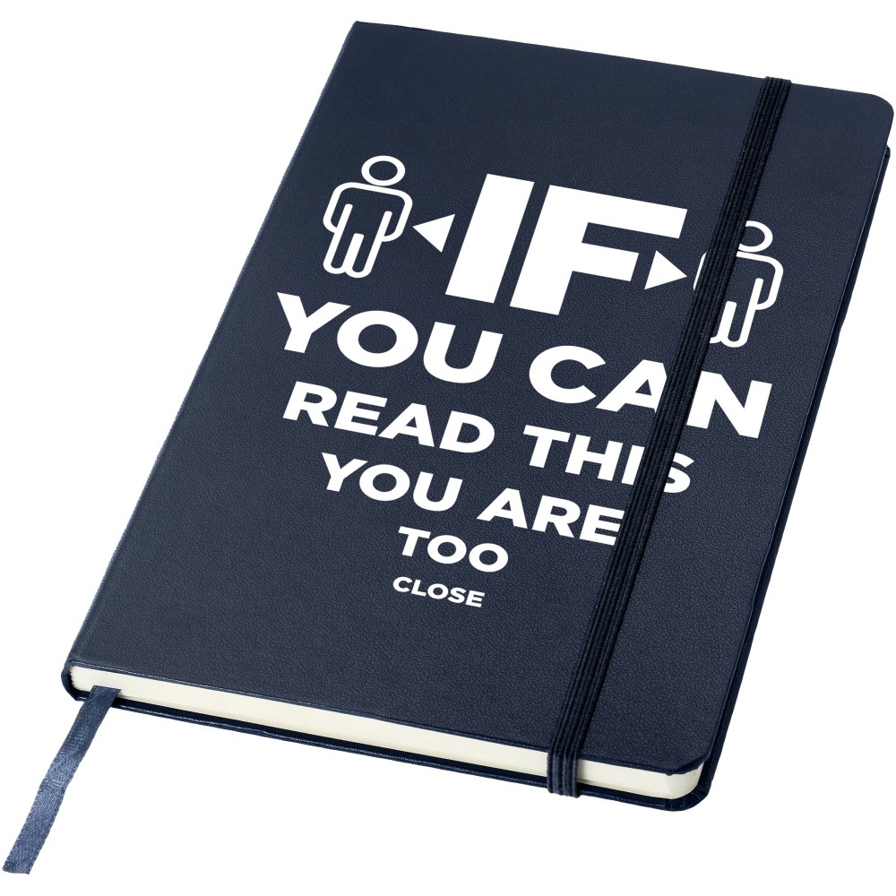 Ez az exkluzív kivitelű, klasszikus stílusú, keményfedeles, gumiszalaggal záródó, 80 lapos (80 g/m2), vonalas zsebkönyv (A5 méret) ideális jegyzetek készítéséhez és megosztásához. A hátoldalán kihúzható zsebbel a kisebb jegyzetek tárolásához. Journalbooks díszdobozban. Emblémázás: Szitanyomás, Tamponnyomás, UV nyomtatás