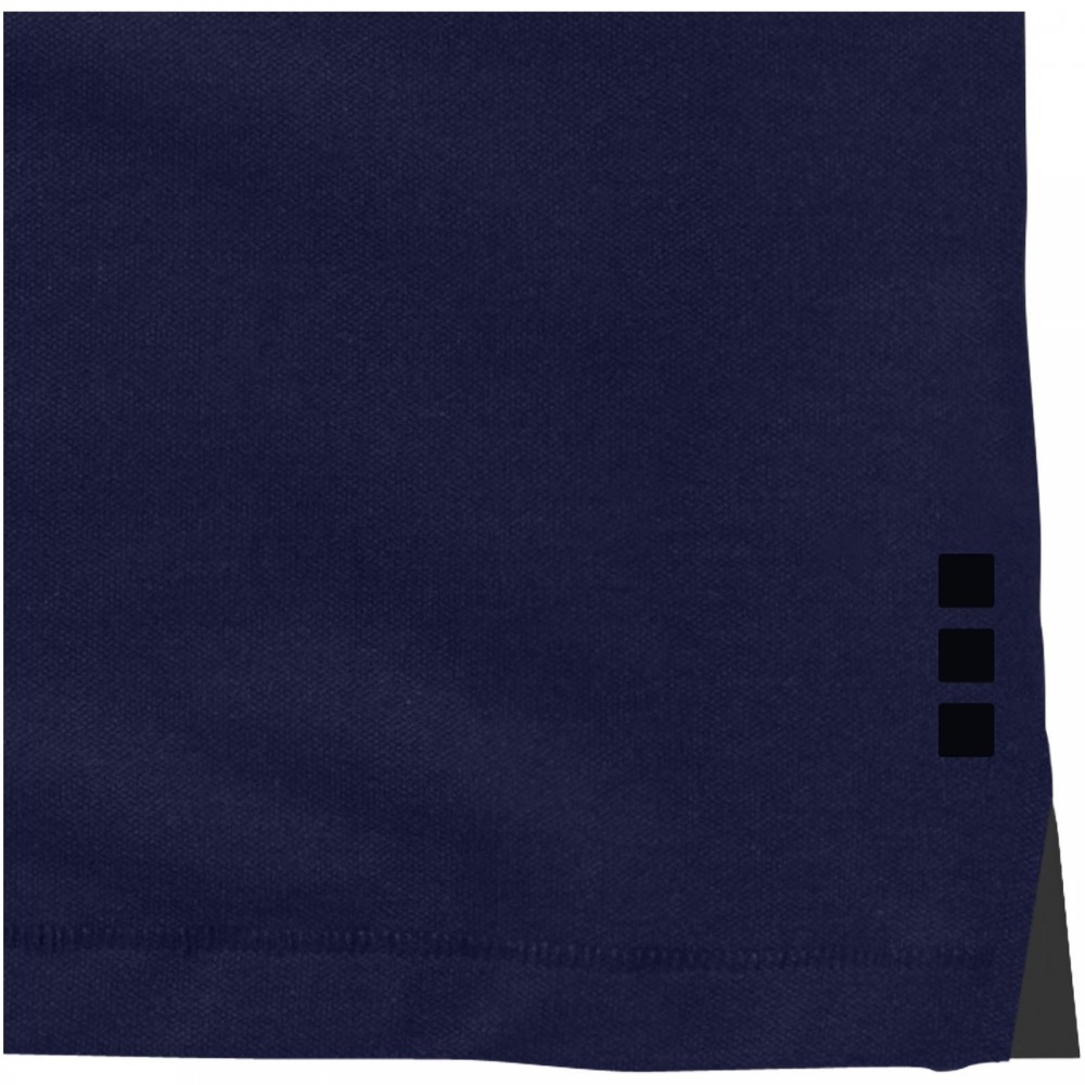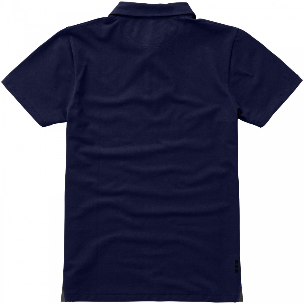 Normál szabásvonal. A férfi modell 3, a női 4 gravírozott, színben illeszkedő gombbal. Az oldalsliccben kontrasztos színű V-betét. Rejtett öltések. Tónusos logónyomat hátul. Kontrasztos színű félhold nyakbetét. Szatén szalagerősítés a nyakrészen. Saját anyagából készült gallér. Dupla piké, 95% pamut és 5% elasztán. 200g/m2. Emblémázás: Hímzés, Szitanyomás