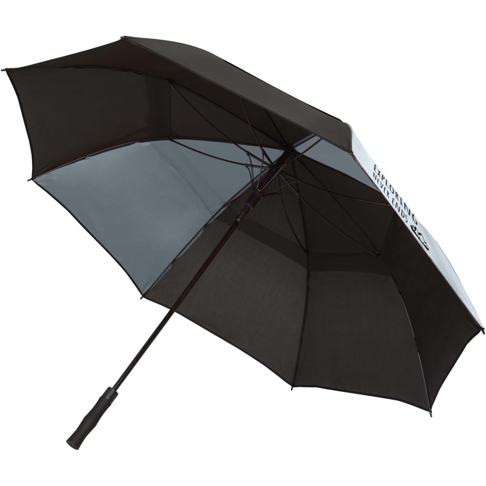 A Jeff szélálló golfesernyő tágas, 55 hüvelykes poliészter ernyőrésszel rendelkezik, amely kényelmesen megvéd több személyt is az időjárástól. Erős üvegszálas szára és váza kiváló rugalmasságot biztosít, így jól ellenáll az erős szélnek. Praktikus műanyag fogantyúja automata nyitógombbal van ellátva, ami gyors és egyszerű használatot tesz lehetővé. Kontrasztos ernyőpaneljei remek lehetőséget kínálnak feltűnő, látványos emblémázásra, így ideális választás rendezvényekhez, promóciókhoz vagy mindennapi használatra. Emblémázás: Szitanyomás