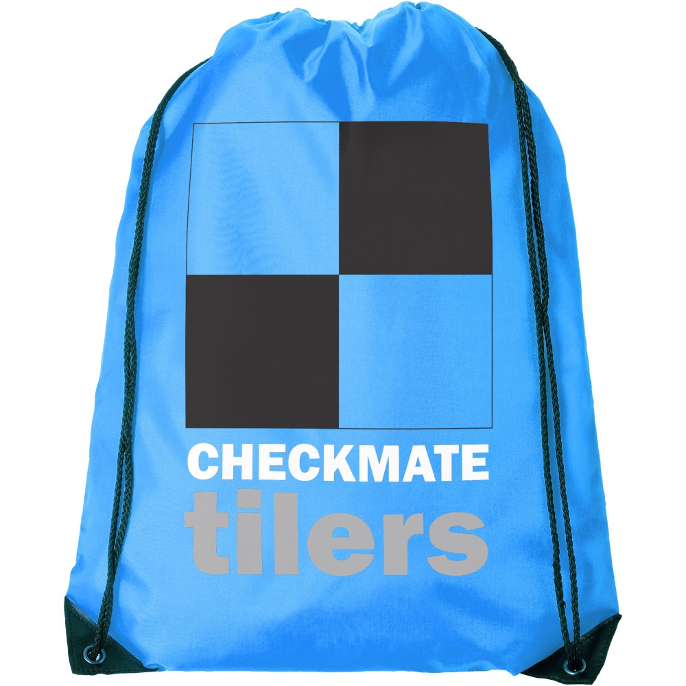 Húzózsinórral zárható nagy fő rekesz. A húzózsinór kialakítása miatt vállon vagy hátizsákként is használható. 210D Polyester. Emblémázás: Szublimálás, Szitanyomás