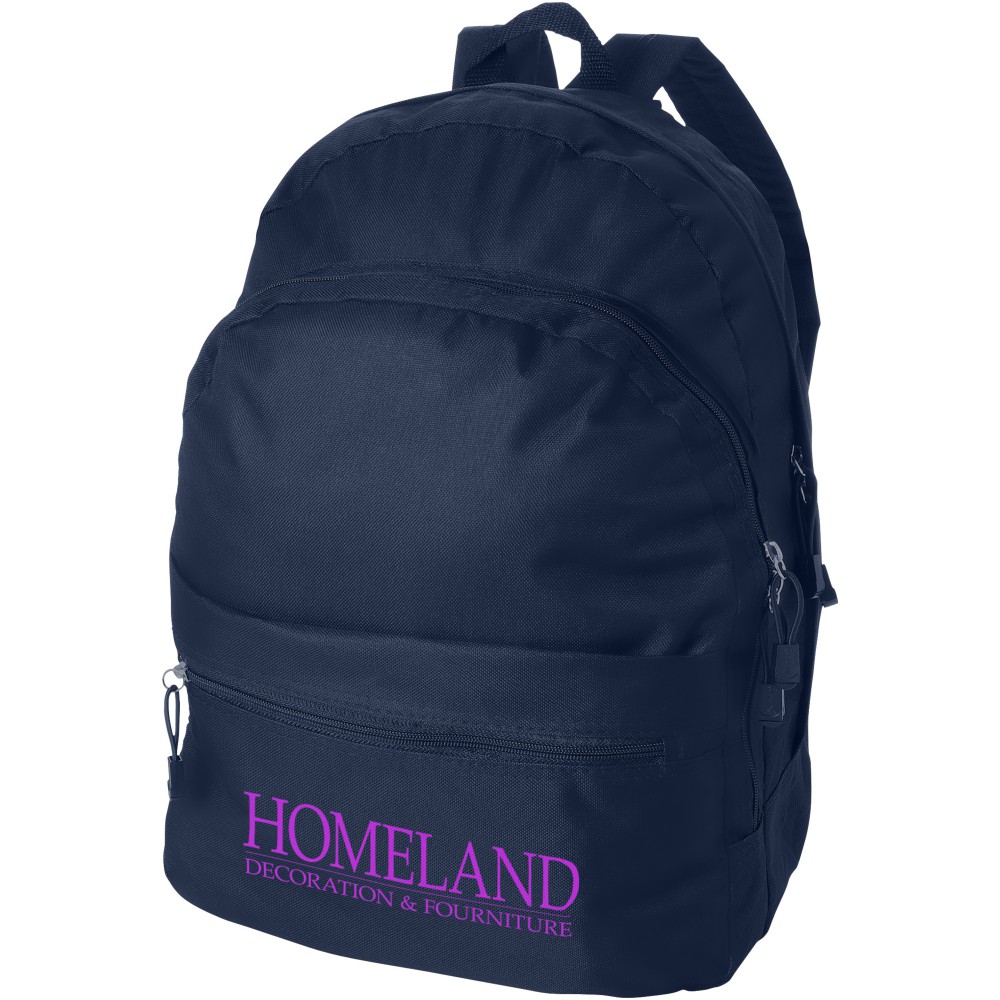 A kényelmes Trend hátizsák nyerő a promóciós hátizsákok között. A divatos kialakítású táska négy rekesszel rendelkezik: két cipzáras rekesszel, egy elülső cipzáras zsebbel és egy tépőzáras elülső zsebbel, így bőséges helyet kínál nagy és kis tárgyak tárolására egyaránt. A termék 600D poliészterből készült. Emblémázás: Hímzés, Szitanyomás
