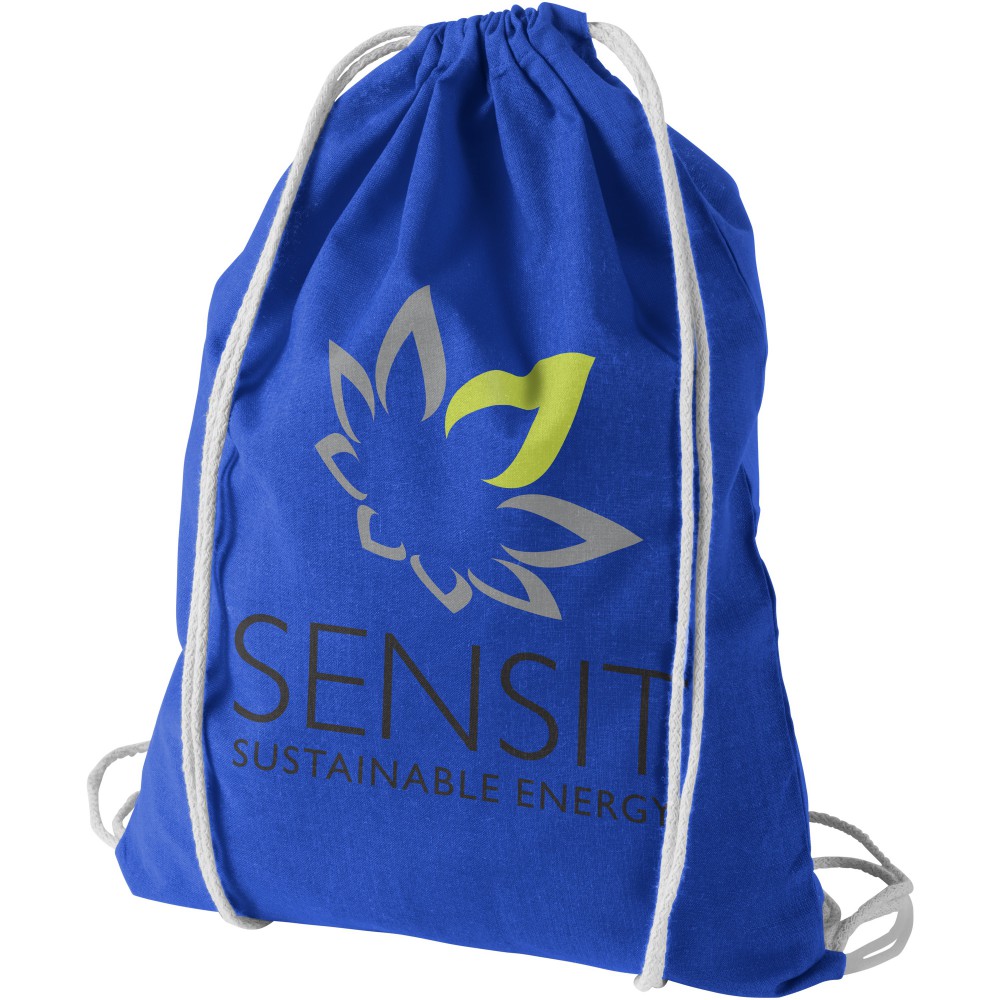 Húzózsinórral zárható nyitott fő rekesz. 100 g/m2 pamut. Emblémázás: Szitanyomás