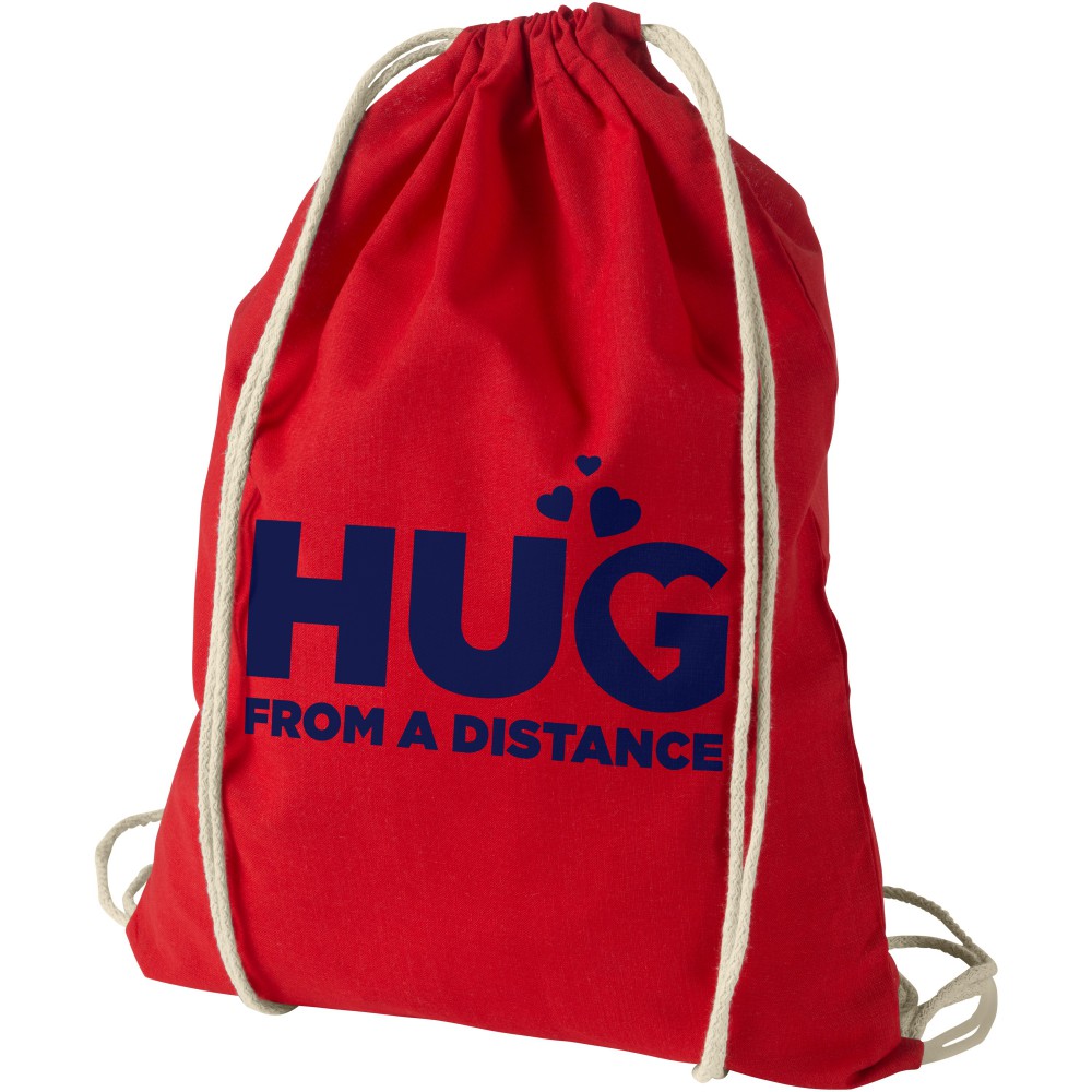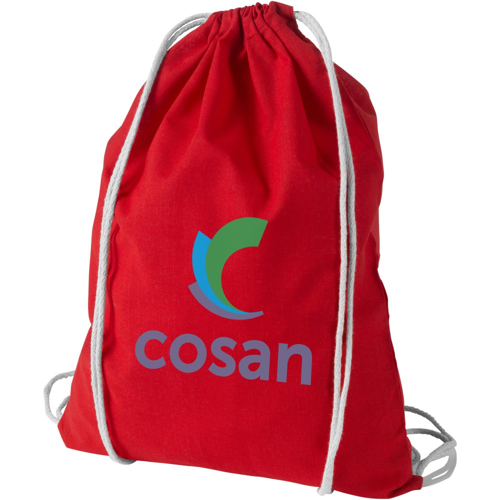 Húzózsinórral zárható nyitott fő rekesz. 100 g/m2 pamut. Emblémázás: Szitanyomás