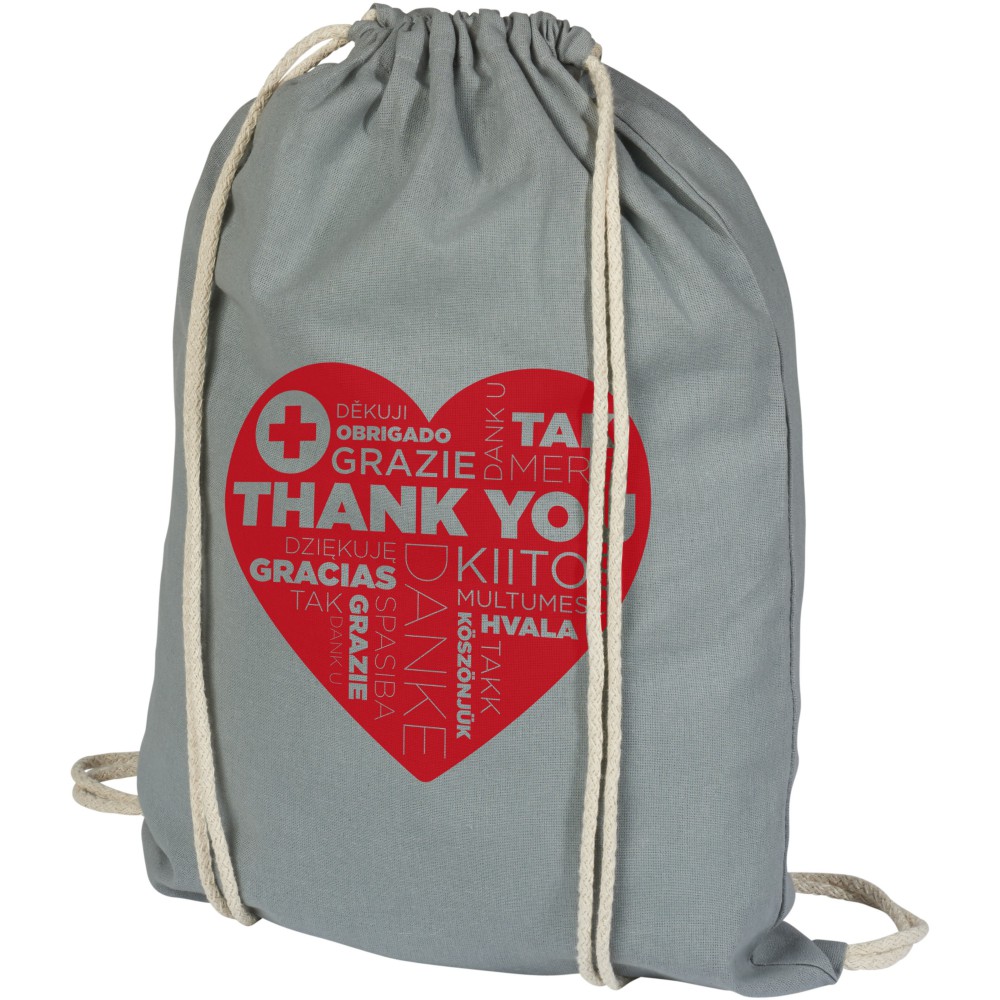Húzózsinórral zárható nyitott fő rekesz. 100 g/m2 pamut. Emblémázás: Szitanyomás