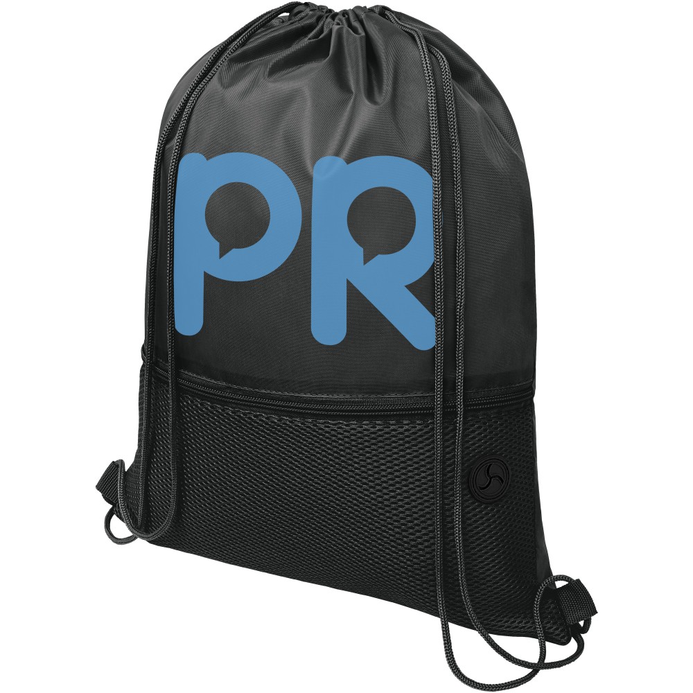 Tornazsák színben illeszkedő zsinórral, és kivezető nyílással a kütyük vezetéke számára, cipzáras első zsebbel. Teherbírás: 5 kg. 210D poliészter. Emblémázás: Szitanyomás
