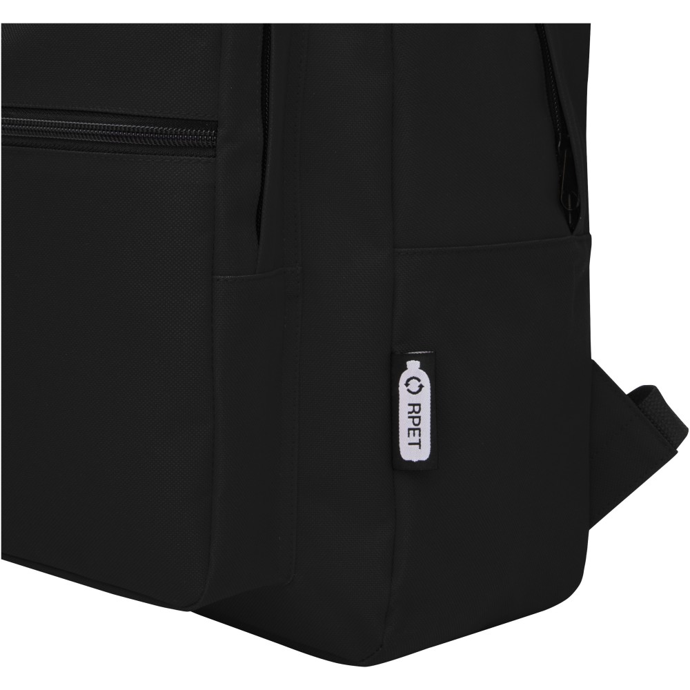 Hátizsák 100%-ban újrahasznosított műanyagból készült, amivel hozzájárulunk a műanyag hulladék csökkentéséhez. Állítható vállpántok, 2 cipzáras rekesz és egy első cipzáras zseb. Körülbelül 15 palack újrahasznosításából gyártott termék. RPET. Emblémázás: Szitanyomás