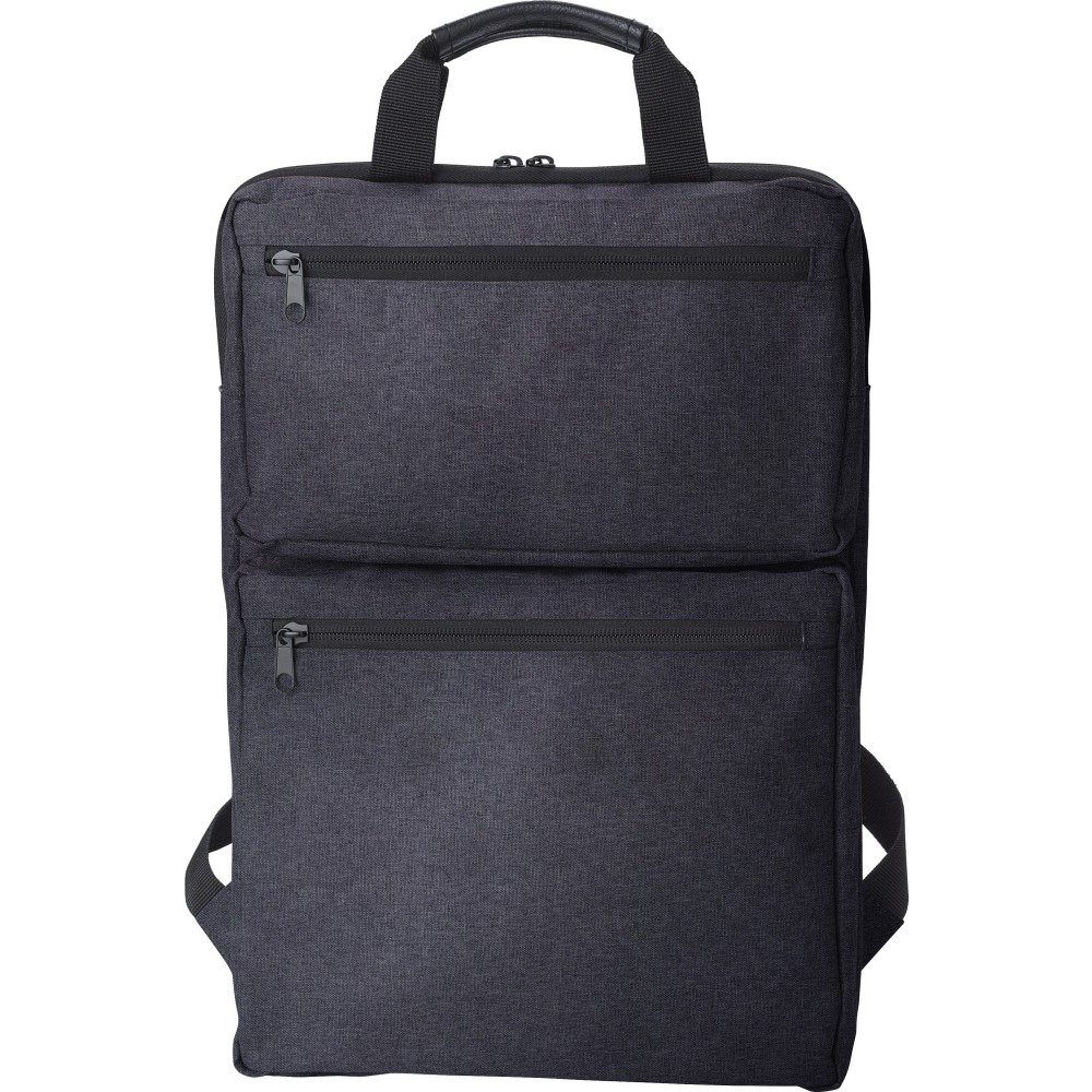 Hátizsák két külső cipzáras zsebbel és laptop rekesszel 15 -es laptop számára. Párnázott vállpántokkal és két rövid fogantyúval a tetején. Művászon 300D. Emblémázás: Szitanyomás