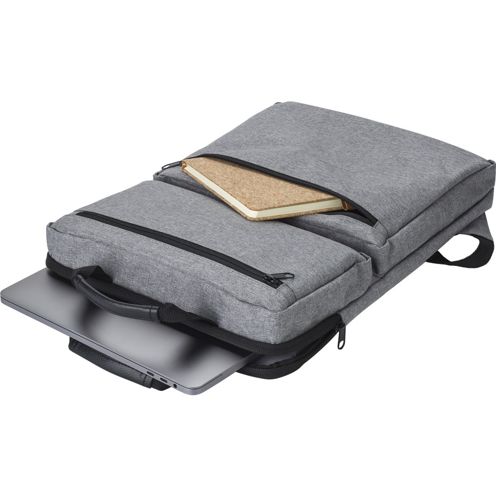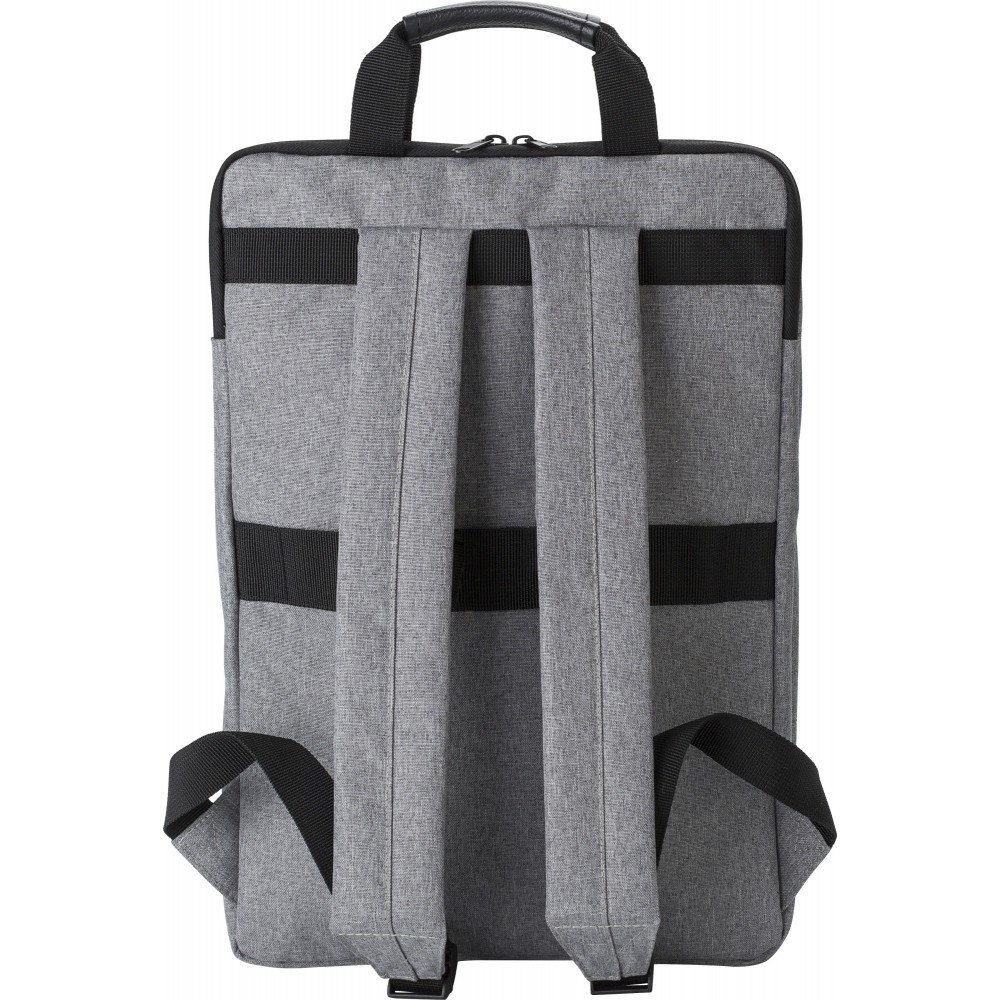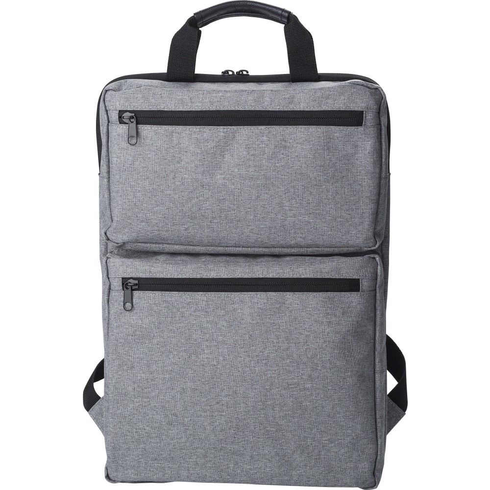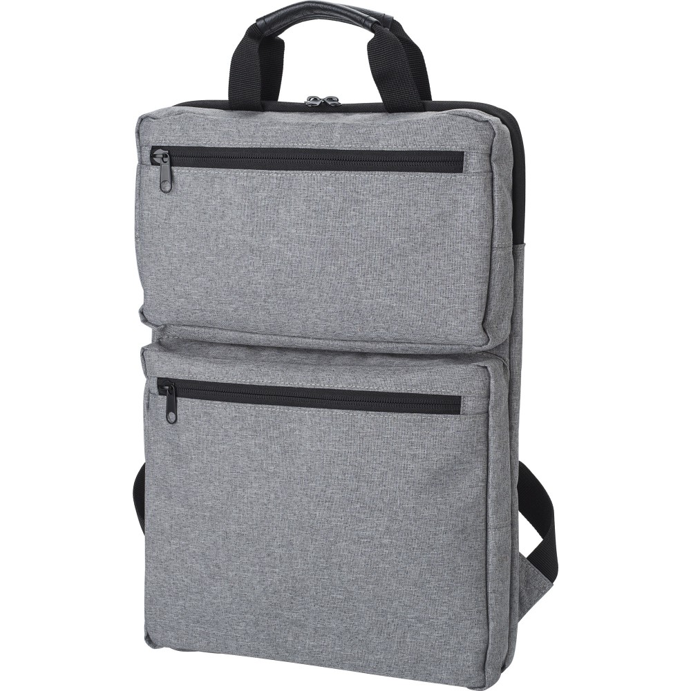Hátizsák két külső cipzáras zsebbel és laptop rekesszel 15 -es laptop számára. Párnázott vállpántokkal és két rövid fogantyúval a tetején. Művászon 300D. Emblémázás: Szitanyomás