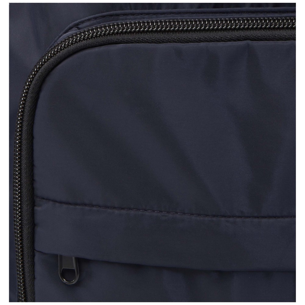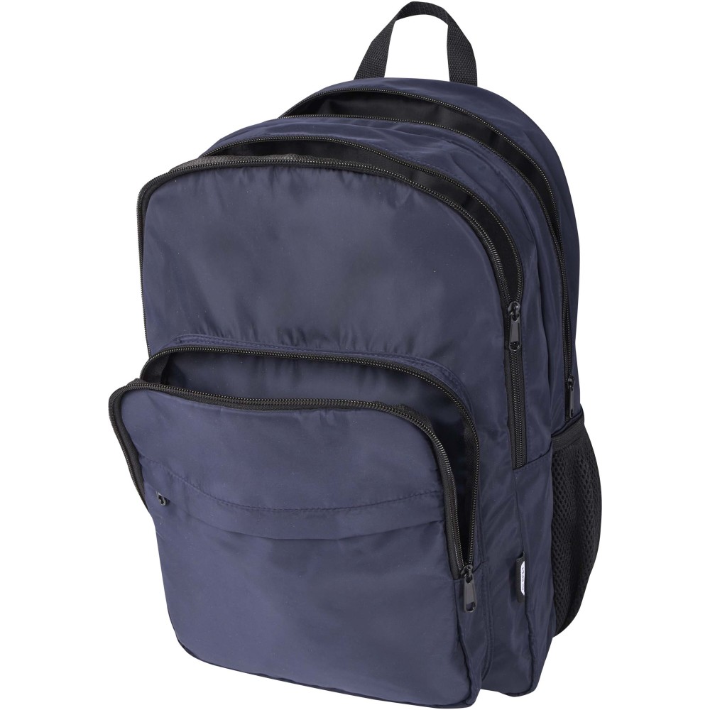 A Trend Plus hátizsák GRS tanúsítvánnyal rendelkező újrahasznosított, puha és gyűrődésálló anyagból készült, minőségi RPET béléssel. A hátizsák 15?-os laptoprekesszel, rendszerező rekesszel, cipzáras elülső zsebekkel, oldalsó rugalmas hálós zsebekkel, valamint légáteresztő hátpárnázattal és bőröndpánttal rendelkezik. Az állítható vállpántok maximális kényelmet biztosítanak. Űrtartalma: 20 liter. Teherbírás: akár 10 kg. PVC-mentes. Emblémázás: Szitanyomás