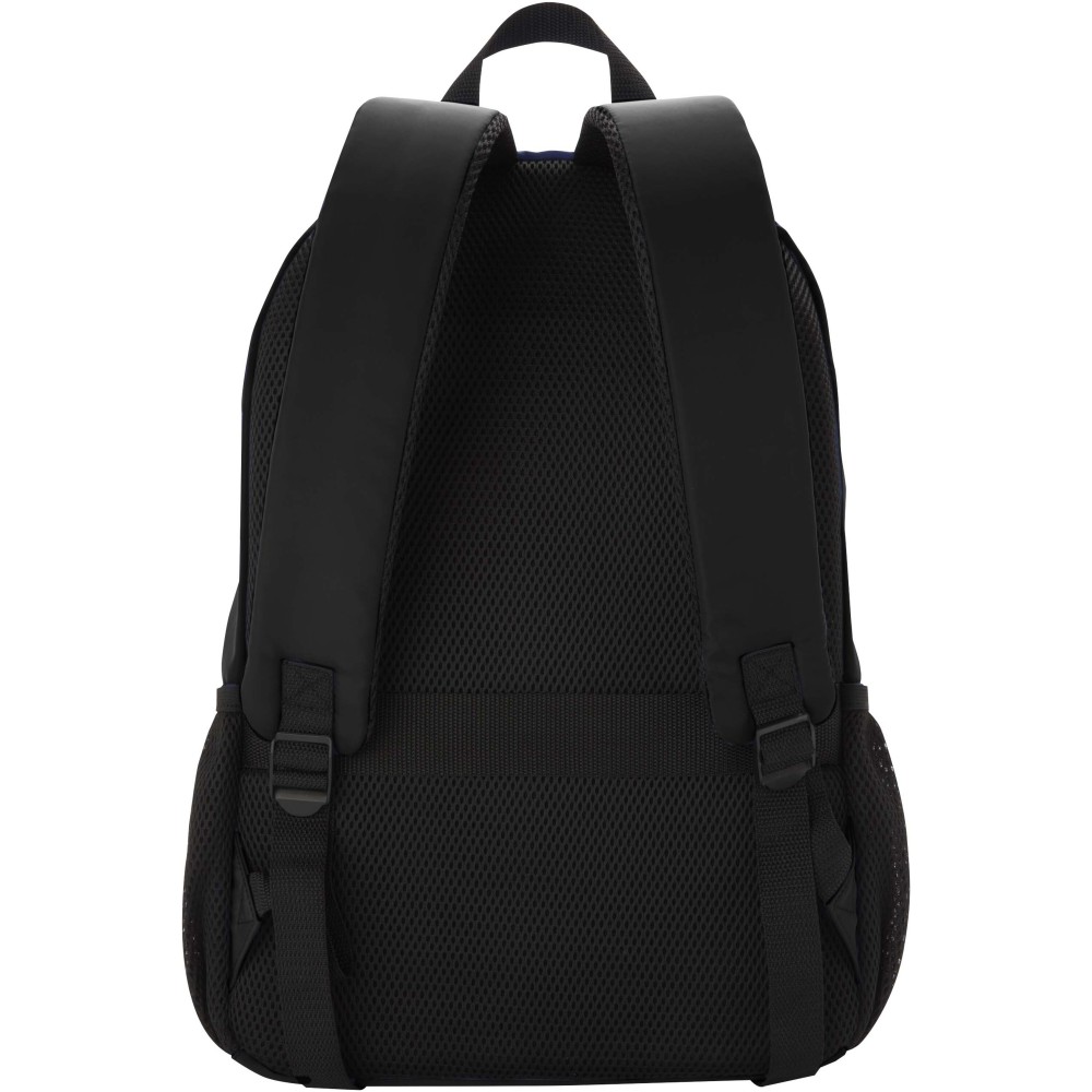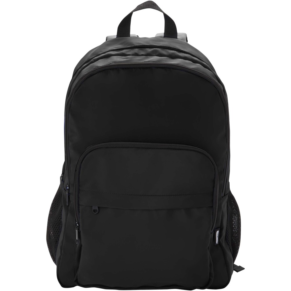 A Trend Plus hátizsák GRS tanúsítvánnyal rendelkező újrahasznosított, puha és gyűrődésálló anyagból készült, minőségi RPET béléssel. A hátizsák 15?-os laptoprekesszel, rendszerező rekesszel, cipzáras elülső zsebekkel, oldalsó rugalmas hálós zsebekkel, valamint légáteresztő hátpárnázattal és bőröndpánttal rendelkezik. Az állítható vállpántok maximális kényelmet biztosítanak. Űrtartalma: 20 liter. Teherbírás: akár 10 kg. PVC-mentes. Emblémázás: Szitanyomás
