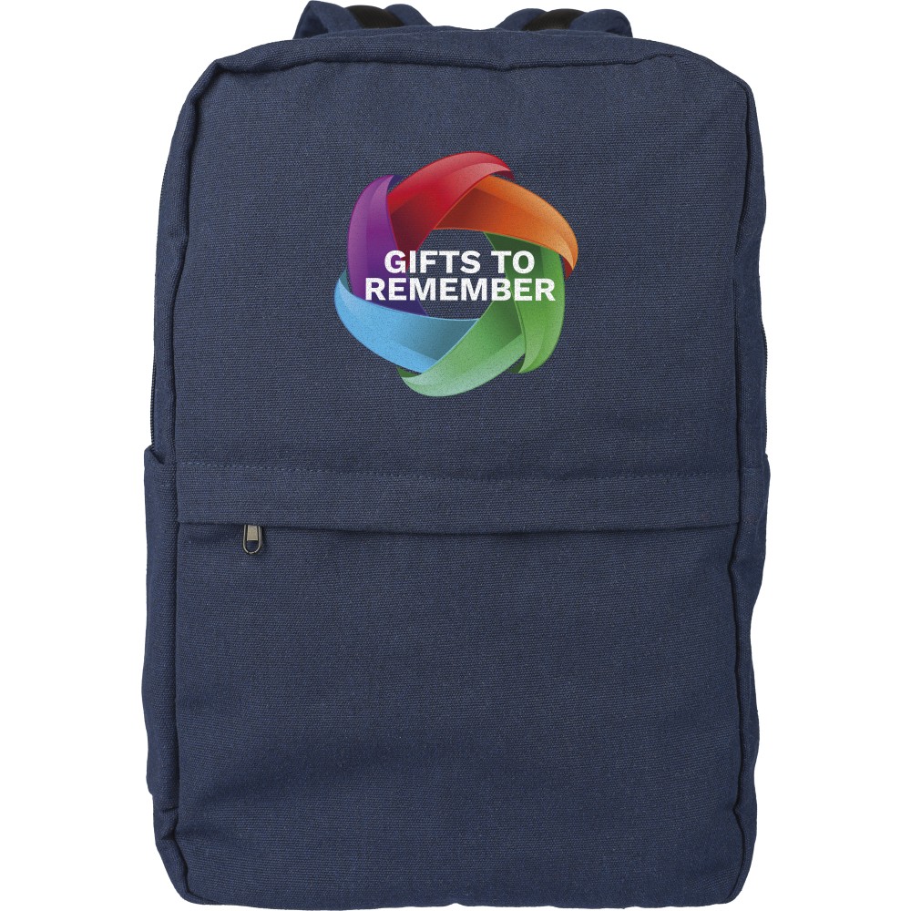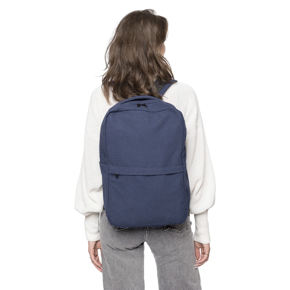 Hátizsák 330 g/m2 újahasznosított policotton anyagból, 210D poliészter béléssel. Egy nagy cipzáras rekesszel, párnázott 15"-es laptoptartó résszel, két belső és két külső rekesszel, oldalzsebbel és egy kicsi, cipzáras elsőzsebbel. Párnázott, állítható vállpánttal és hordozófüllel. Űrtartalom: 14 liter, teherbíró képesség: 13 kg. Címkét tartalmaz. Emblémázás: Hímzés, Szitanyomás