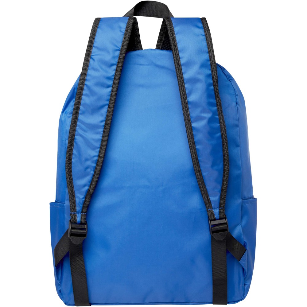 Ez a könnyű, mégis strapabíró hátizsák a kényelem és praktikusság jegyében készült, és könnyedén egy kompakt tasakba hajtható, amelyen szövettáska hurok található a kényelmes hordozás érdekében - ideális utazók, túrázók és a mindennapi használat számára. Cipzáras főrekesszel, cipzáras elülső zsebbel, két oldalsó zsebbel és állítható vállpántokkal rendelkezik. PVC-mentes újrahasznosított poliészterből készült. Űrtartalma: 15 liter. Emblémázás: Szitanyomás
