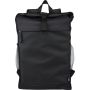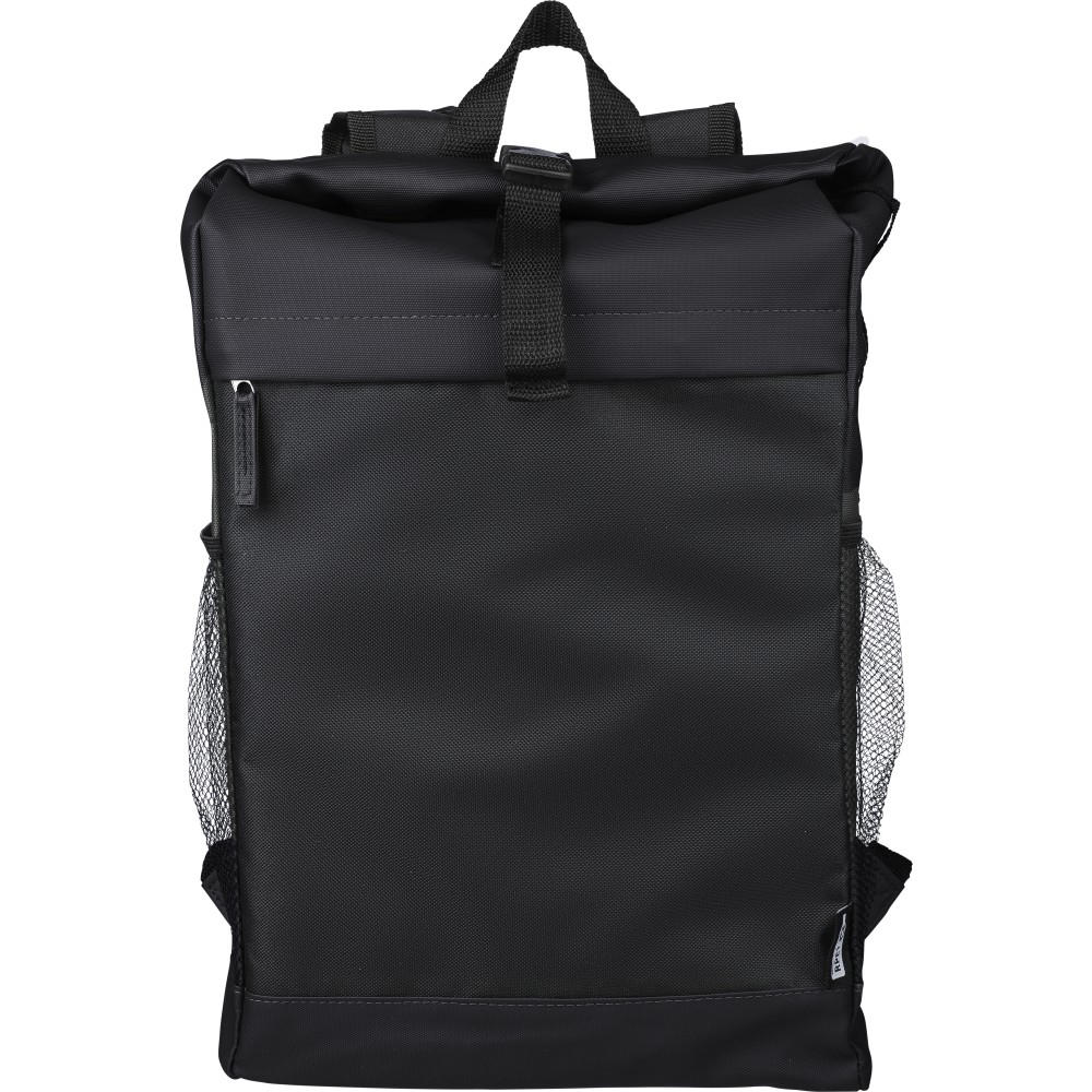 600D rPET poliészter roll-top hátizsák. PU bevonat teszi vízlepergetővé. Rejtett cipzáras első zsebbel, hálós oldalzsebekkel, 15 -es laptop számára kialakított tárolórésszel, 5 tárolórekesszel, állítható vállpánttal. Kapacitása 25 liter, teherbírása 15 kg. Oldalán rPET címkével. Emblémázás: Szitanyomás