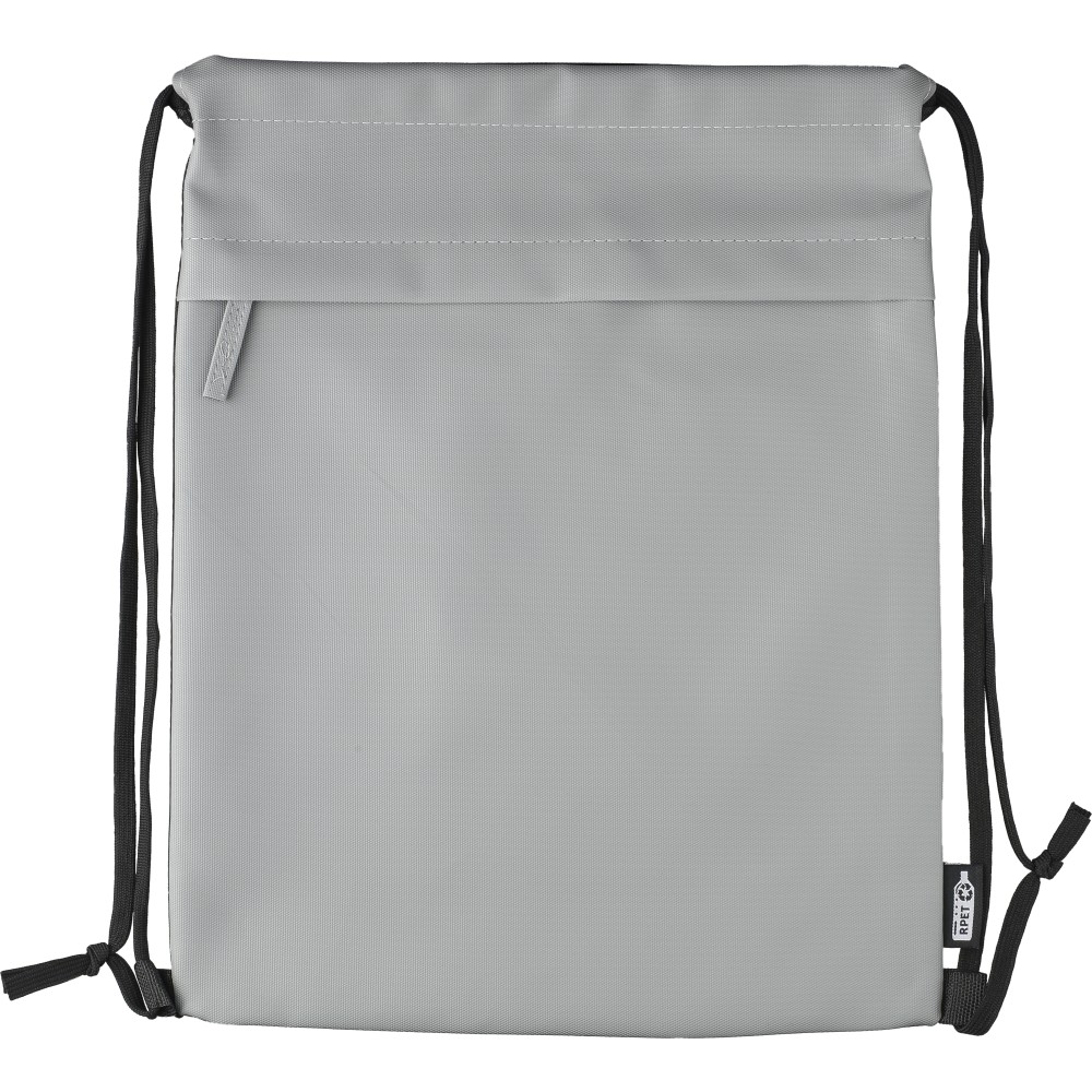 600D rPET poliészter tornazsák. Az elejét PU bevonat teszi vízlepergetővé. Rejtett cipzáras első zsebbel, két tárolórésszel, első és belső zsebekkel. Kapacitása 8 liter, teherbírása 8 kg. Oldalán rPET címkével. Emblémázás: Szitanyomás