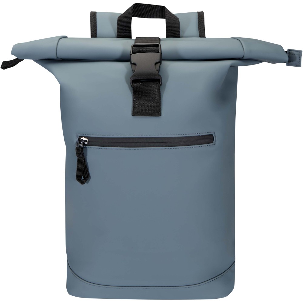 Prémium, újrahasznosított PU bőrből készült, színben harmonizáló RPET béléssel, ez a rolltop hátizsák modern megjelenést és hosszú élettartamot kínál. Vízlepergető felülete megóvja a tartalmát esőtől és nedvességtől, míg a feltekerhető zárórész rugalmas pakolást tesz lehetővé - ideális laptop hátizsákként ingázáshoz, utazáshoz vagy edzőterembe. Belsejében párnázott rekesz található, amely akár 15,6" laptopot is biztonságosan tárol, valamint egy cipzáras zseb a technikai eszközök és mindennapi kellékek rendszerezésére. A külső részen vízálló cipzárral ellátott elülső zseb biztosít gyors és biztonságos hozzáférést, míg a párnázott, állítható vállpántok és a légáteresztő hátpanel egész napos kényelmet nyújtanak. Emblémázás: Szitanyomás