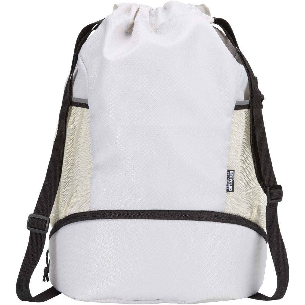 A Nomad sport húzózsinóros táska GRS tanúsítvánnyal rendelkező, újrahasznosított ripstop anyagból készült, vízlepergető felülettel, GRS tanúsítvánnyal rendelkező RPET béléssel és fényvisszaverő elemekkel. Aktív életmódot folytatók számára tervezték, ideális a mindennapi edzéshez és sporttevékenységekhez. Tágas fő rekesze: elfér benne ruházat, törölköző vagy akár egy kosárlabda is. Külön alsó rekesze biztosítja a cipők vagy használt ruhák elkülönített tárolását. Két oldalsó hálós zsebbel rendelkezik fényvisszaverő részletekkel, egy rejtett cipzáras zsebbel az értékek számára, valamint állítható hevederpántokkal a kényelmes hordozás érdekében. Emblémázás: Szitanyomás