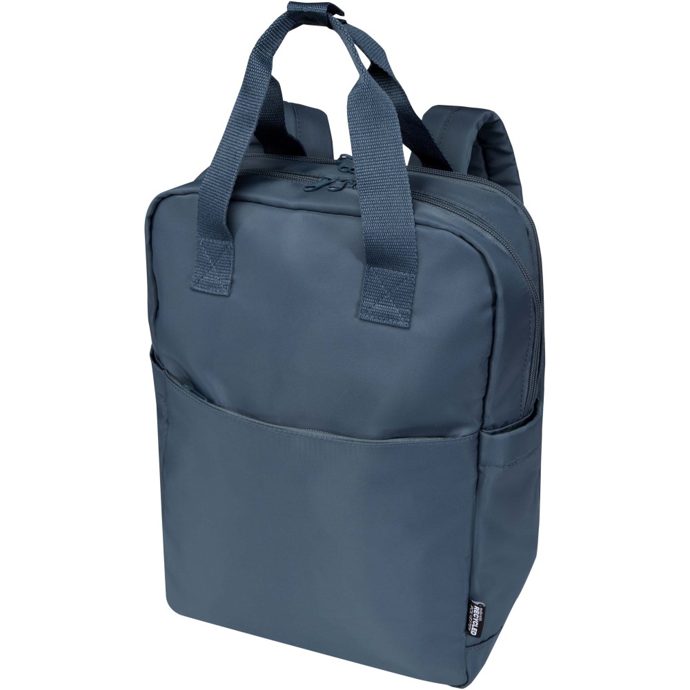 A Trip Aware® újrahasznosított utazó laptop hátizsák kompakt, könnyű kialakítású, kifejezetten a kényelmes utazáshoz és mindennapi használatra tervezve. Tartós 290D twill poliészterből készült, puha kötött hátoldallal, RPET 210D/PU béléssel. Funkcionalitást és letisztult, praktikus dizájnt ötvöz. Két oldalzsebbel rendelkezik kulacs számára, dupla hordfüllel és kényelmes vállpántokkal. Az elülső cipzáras zseb rendszerezett tárolást kínál útlevélnek, tollaknak és kulcstartó szalagnak, míg a fő rekeszben jegyzetfüzet vagy tablet helyezhető el. Külön 14" laptop rekesszel és hátsó trolipánttal is rendelkezik, így ideális utazáshoz. Minden hátizsák Aware® nyomkövetővel érkezik, amely QR-kód segítségével lehetővé teszi a termék eredetének és útjának nyomon követését, növelve az ellátási lánc átláthatóságát és a kapcsolatot a termék gyártási folyamatával. Űrtartalom: 9 liter. Emblémázás: Szitanyomás