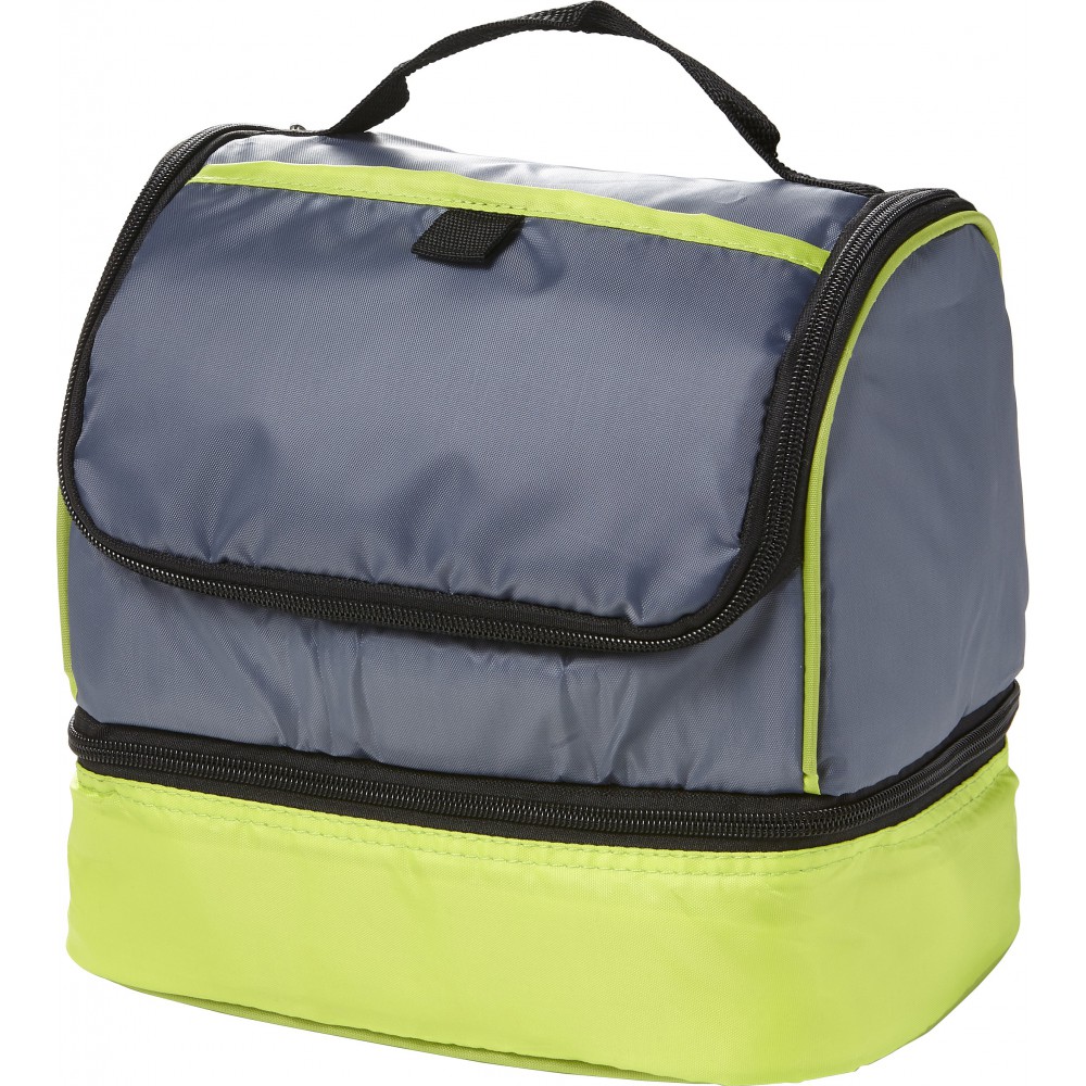 Hűtőtáska az alján külön hűtőrésszel, valamint hálós oldalzsebbel. 210D poliészter. Emblémázás: Szitanyomás