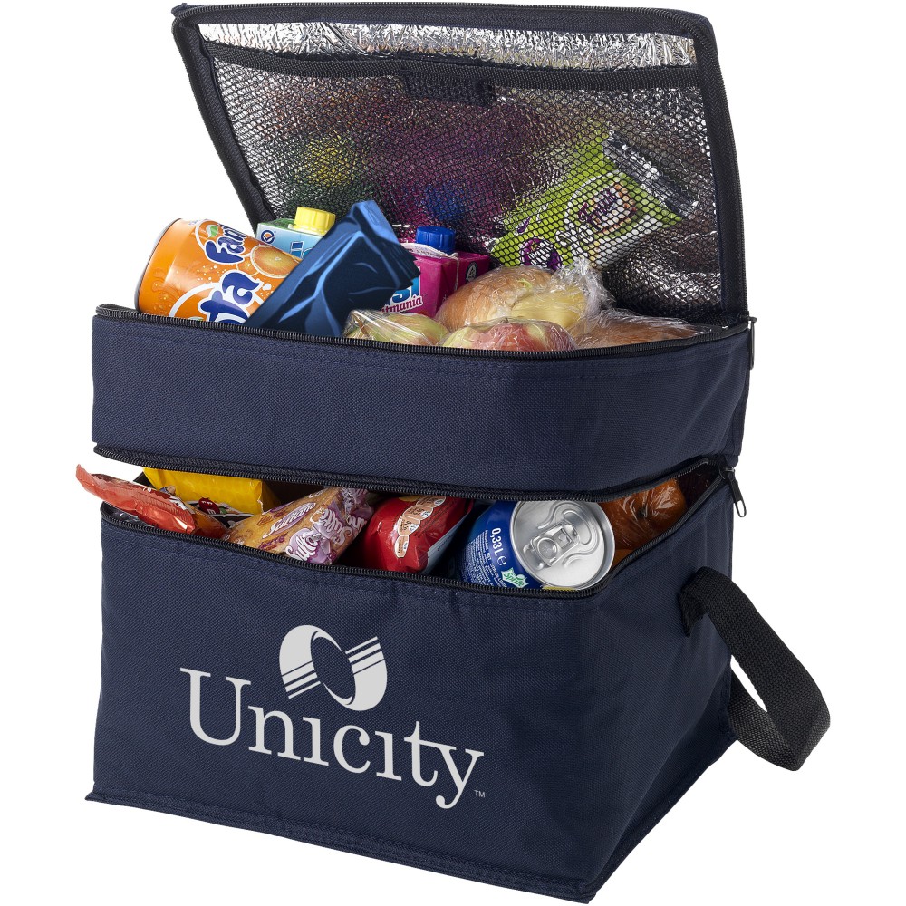 Az Oslo hűtőtáskával bármikor és bárhol hűtött italokat és harapnivalókat biztosíthat. A hűtőtáska két különálló cipzáras rekesszel rendelkezik. A felső része tökéletes az apró falatok tárolására, az alsó része pedig a nagyobb élelmiszerek tárolására. A vállpánt állítható, így a táskát mindenki könnyen hordozhatja. A hűtőtáska 600D poliészterből készült, amely egy nagy teherbírású és tartós szövet. Emblémázás: Szitanyomás