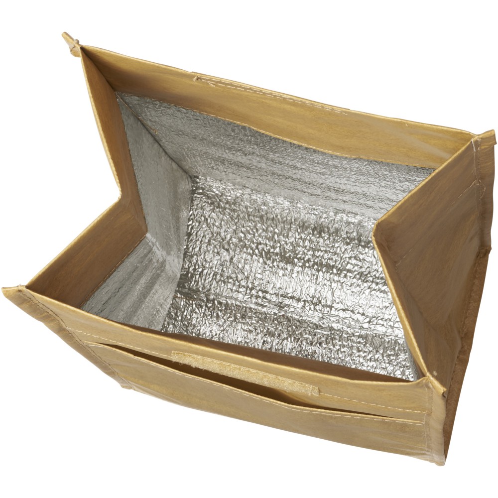 Hagyományos stílusú hűtőtáska nagy, hőszigetelt fő résszel, felcsavarható záródással. 12 db üdítősdoboz számára is alkalmas. Anyaga: 110g-os laminált, nemszőtt polipropilén. Emblémázás: Szitanyomás