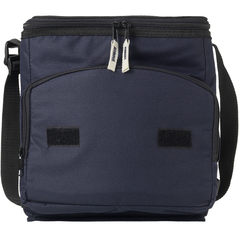 Összehajtható hűtőtáska cipzáras fő rekesszel és cipzáras elülső zsebbel. Állítható vállpánt. A hűtőtáska laposra hajtható az elülső zseben található horog és hurok segítségével. Egyéb kiegészítőt nem tartalmaz. Emblémázás: Szitanyomás
