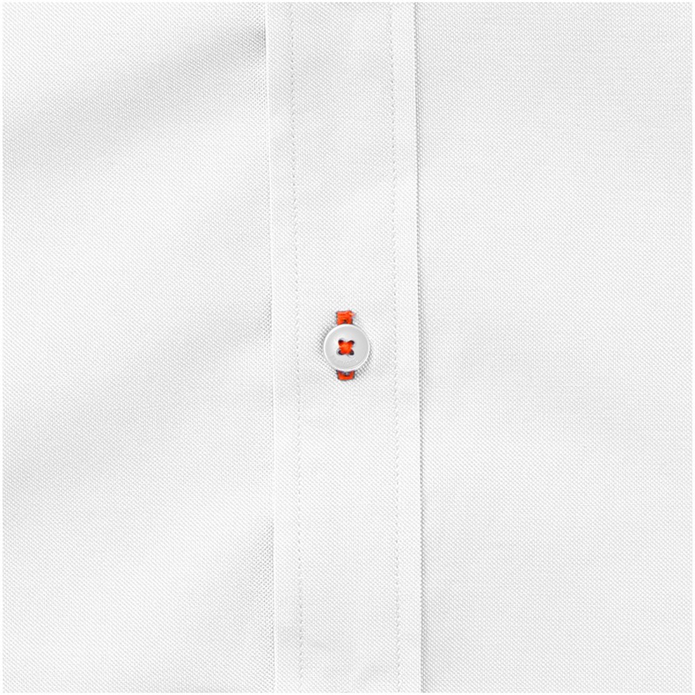 Normál szabásvonal. Elevate logóval gravírozott, fehér gombok. Alulról a második gomblyuk narancssárga öltésekkel dekorálva. Két gombos, állítható kézelő gombolás. Tónusos logónyomat hátul. Szatén szegély a nyakvonalban. Legombolható gallér (férfi). 100% pamut Oxford anyag. 142 g/m2. Emblémázás: Hímzés