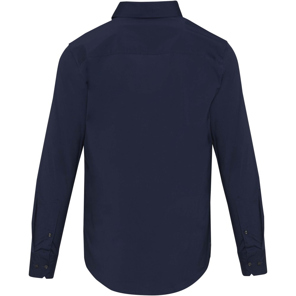 A Carnelian hosszúujjú férfi poplin ing modern kifinomultságot és fokozott kényelmet ötvöz. Kiváló minőségű, BCI-tanúsítvánnyal rendelkező pamutból készült, hozzáadott rugalmassággal, finom 30 denier kétrétegű sodrott szálszerkezettel, amely sima felületet, kivételes tartósságot és luxus érzetet biztosít. A könnyű poplin szövet friss, tiszta megjelenést kölcsönöz, míg a normál fazon mozgásszabadságot és egész napos kényelmet biztosít. Klasszikus, normál gallérral ellátott Carnelian ing sokoldalúan viselhető, mind üzleti, mind alkalmi viselethez. Poplin 97% BCI pamutból és 3% elasztánból, 133 g/m2. Emblémázás: Hímzés