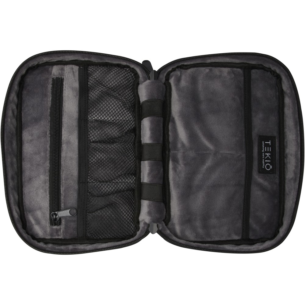 A Rise szervezőtáska sokoldalú és hibrid megoldás a műszaki cikkek rendszerezésére. Ez a tartós 900D GRS újrahasznosított poliészterből és GRS újrahasznosított velúr/bársony béléssel készült keményfedelű tok két lapos tokkal, hálós zsebekkel, alul elasztikus pántokkal a kábelek számára, valamint egy cipzáras zsebbel rendelkezik a további kiegészítők számára. Az összes zseb optimális szervezést biztosít, a kemény héj megvédi az összes értékes kütyüt. Emblémázás: Szitanyomás