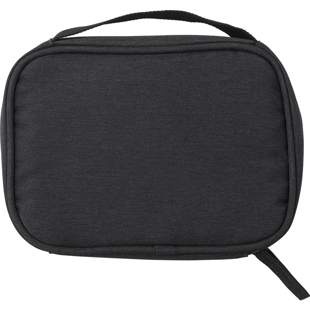 Kistáska utazáshoz, 600D poliészter anyagból. Több kisebb tartózseb kábelek, utazási dokumentumok tárolására. Elöl egy nyitott zseb. Emblémázás: Szitanyomás