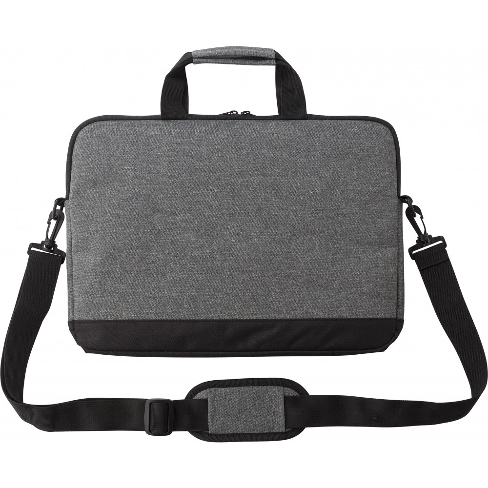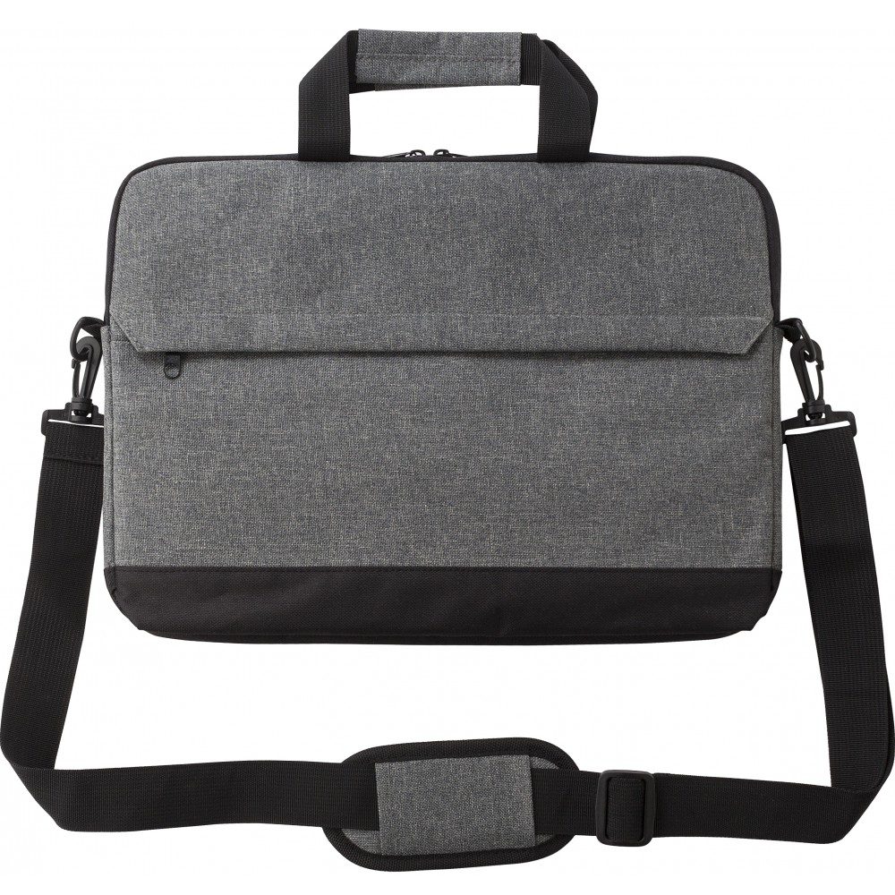 Laptoptáska 15"-es laptophoz. Egy nagy cipzáros rekesz, belül párnázott. Elöl egy cipzáras zseb. Állítható vállpánttal. 600D poliészter. Emblémázás: Szitanyomás