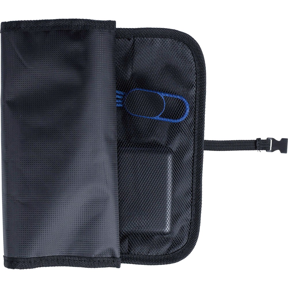Feltekerhető táska műanyag csattal. Több zsebbel és cipzáras rekesszel rendelkezik a töltőkábelek vagy eszközök tárolására. Anyaga: 1680D poliészter. Emblémázás: Szitanyomás
