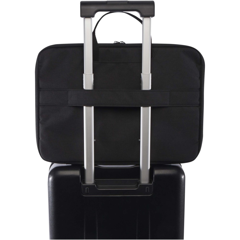 A Libra 2 az 1-ben laptop táska praktikus kialakításának és átgondolt funkcióinak köszönhetően ideális mindennapi ingázáshoz vagy utazáshoz. GRS tanúsítvánnyal rendelkező újrahasznosított poliészterből, valamint RPET béléssel készült, főrekesze pedig 180 fokban nyitható a biztonsági ellenőrzések megkönnyítése érdekében. A táska egyik oldalán minőségi neoprénnel védett laptoprekesz, a másik oldalán két hálós zseb található, emellett cipzáras elülső zseb, hátoldali bőröndpánt és két nyitott zseb biztosít extra tárolóhelyet. A szövet fülek könnyedén elrejthetők, így a táska egyszerűen laptop toként is használható. Emblémázás: Szitanyomás