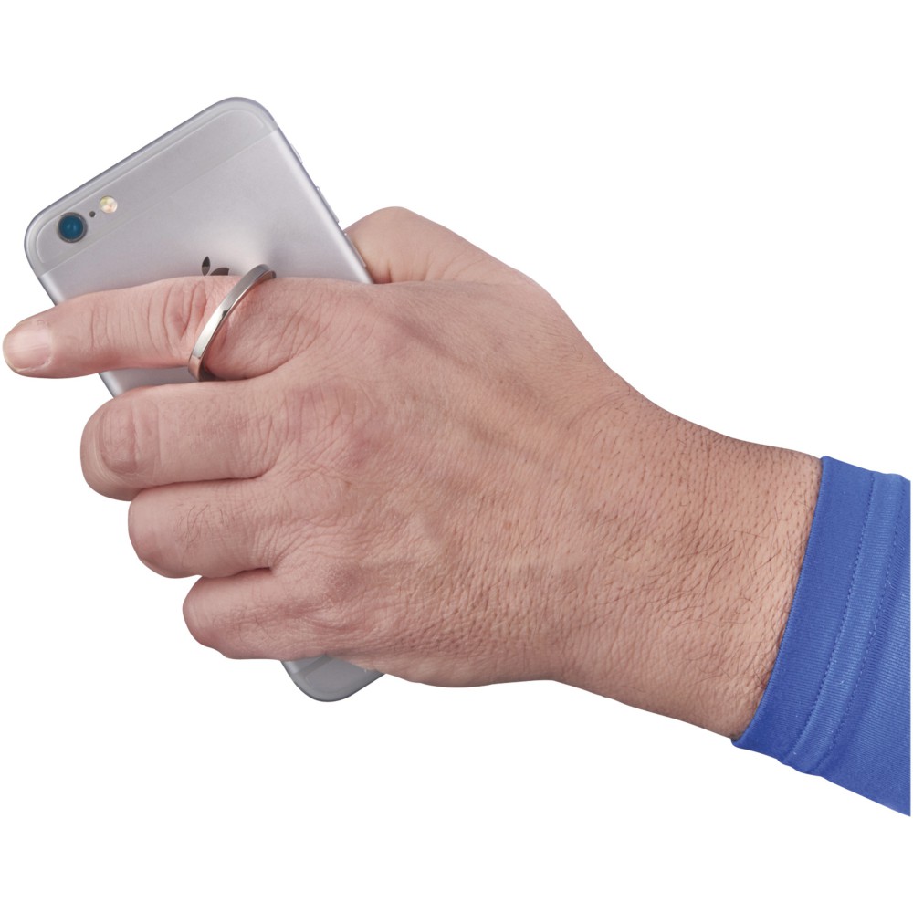 Alumínium gyűrű okostelefonok állványaként használható vagy a kézbentartás biztosítása érdekében. 360 fokban forgatható. Rögzítése eszközünk hátuljára öntapadóval történik .Cink ötvözet. Emblémázás: Gravírozás, Tamponnyomás