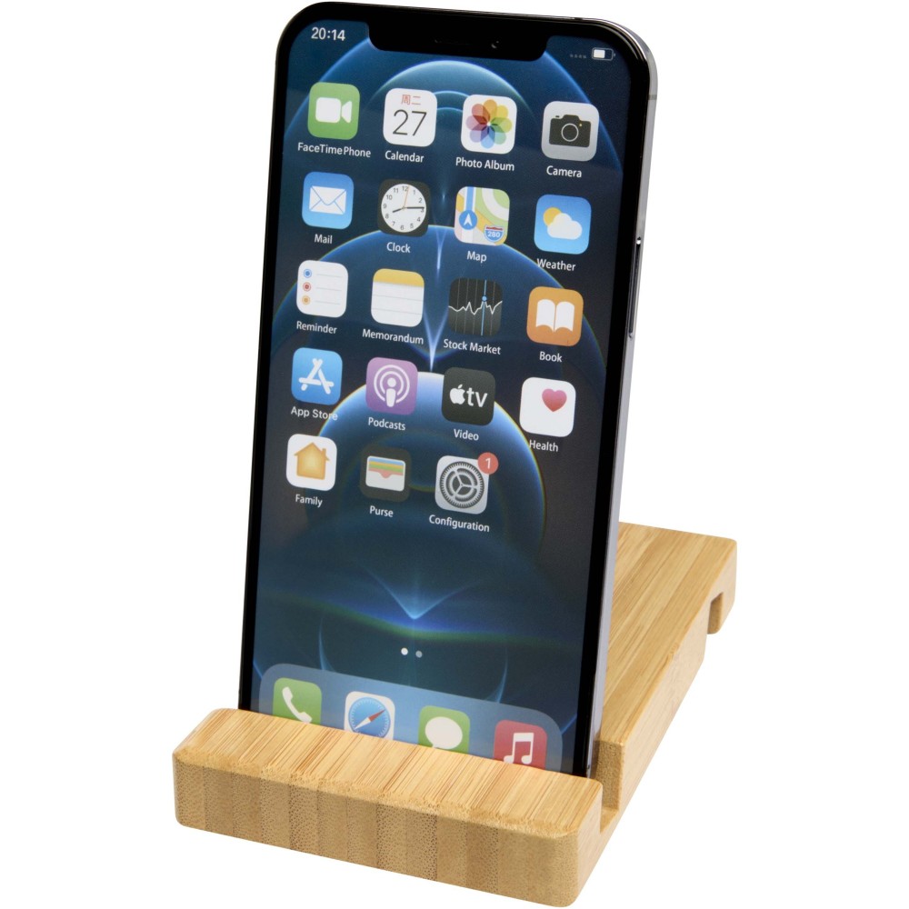 Ismerd meg a sokoldalúságot a Bubup 2-állású tablet- és telefontartóval, amely felelősen beszerzett bambuszból készült. A két állítható dőlésszögnek köszönhetően ez a stílusos telefontartó ideális videónézéshez, videóhívásokhoz vagy olvasáshoz, mindig a megfelelő pozíciót kínálva. Emblémázás: Gravírozás, Tamponnyomás