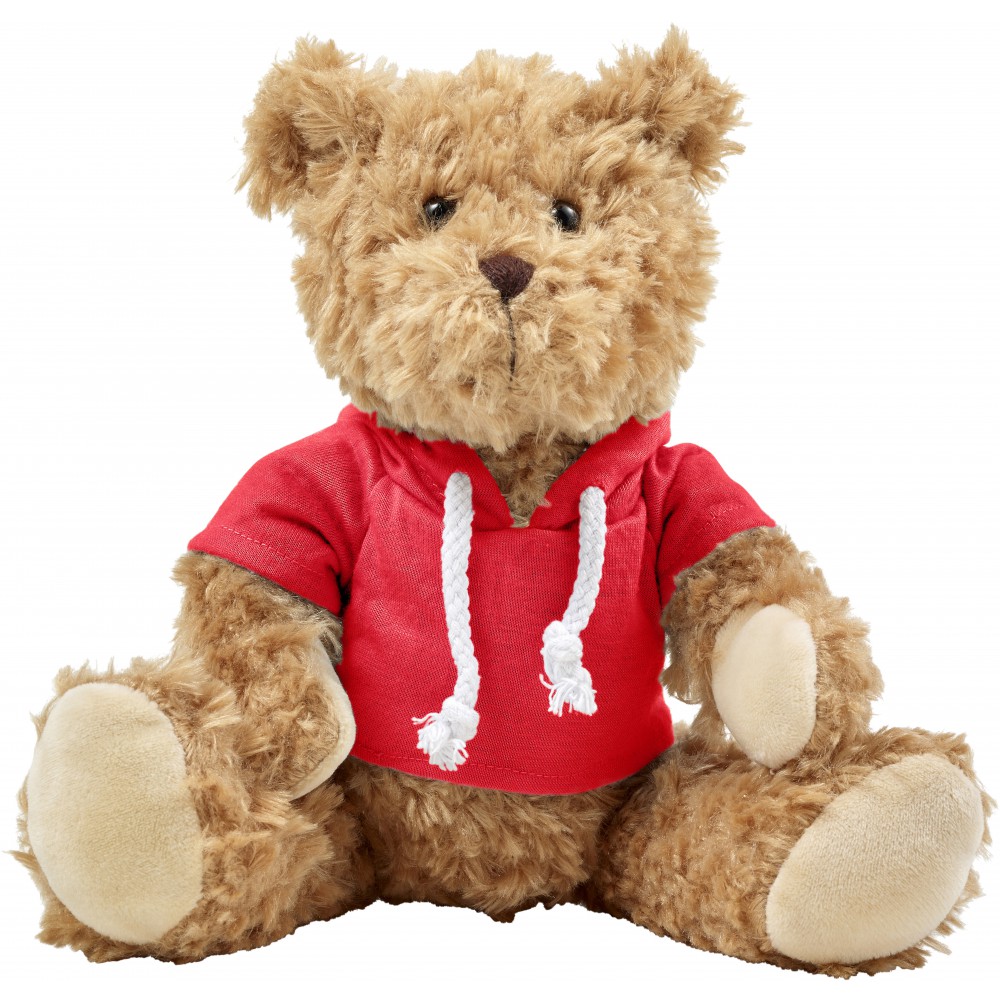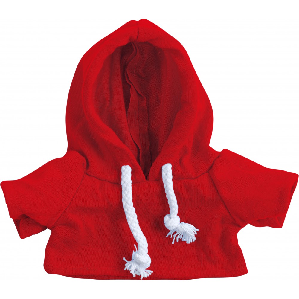 Plüssmackó kapucnis pólóban, piros