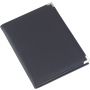 A5-ös PU mappa fém sarokkal. Jegyzettömböt nem tartalmaz. 30 vagy 50 lapos jegyzettömb fehér lapokkal a 23023 vagy 23026 cikkszámon külön rendelhető. A fekete mappa arany színű sarkokkal, a kék mappa ezüst színű sarkokkal érkezik. Emblémázás: Szitanyomás, Tamponnyomás