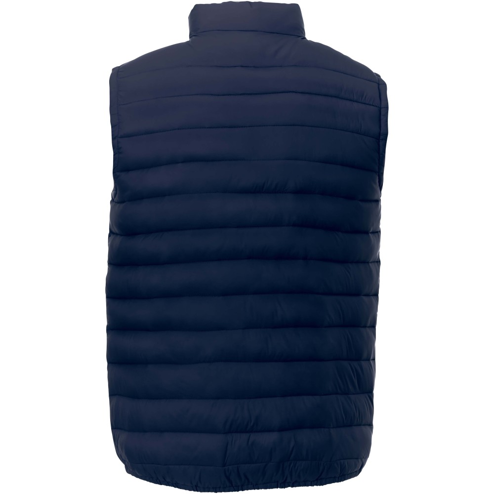 A Pallas férfi újrahasznosított, szigetelt mellény a stílus és a funkcionalitás tökéletes keveréke. Maradjon védett a hidegtől és a széltől a szélvédő segítségével, amely állvédőt tartalmaz. A mellény mellzsebe cipzárral záródik, biztonságos helyet ad a szükséges dolgoknak. A rugalmas szegély stílusos, miközben biztosítja az illeszkedést. 38 g/m2-es matt cire 380T nylon szövetből készült, a mellény elegáns és időtálló külsőt kínál. A töltet és a bélés műszálas, műpehely szigetelésből áll, amely meleget biztosít anélkül, hogy a kényelmet feláldozná. Emblémázás: Hímzés