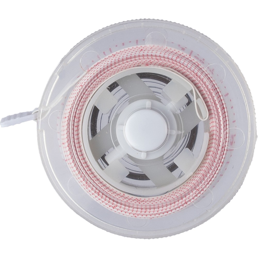 Mérőszalag átlátszó házzal és színes mérőszalaggal. Nyomógombbal és reteszelő mechanizmussal rendelkezik. A nyomtatási terület a hátoldal sík felületén található. 1,5 méter. Emblémázás: Tamponnyomás