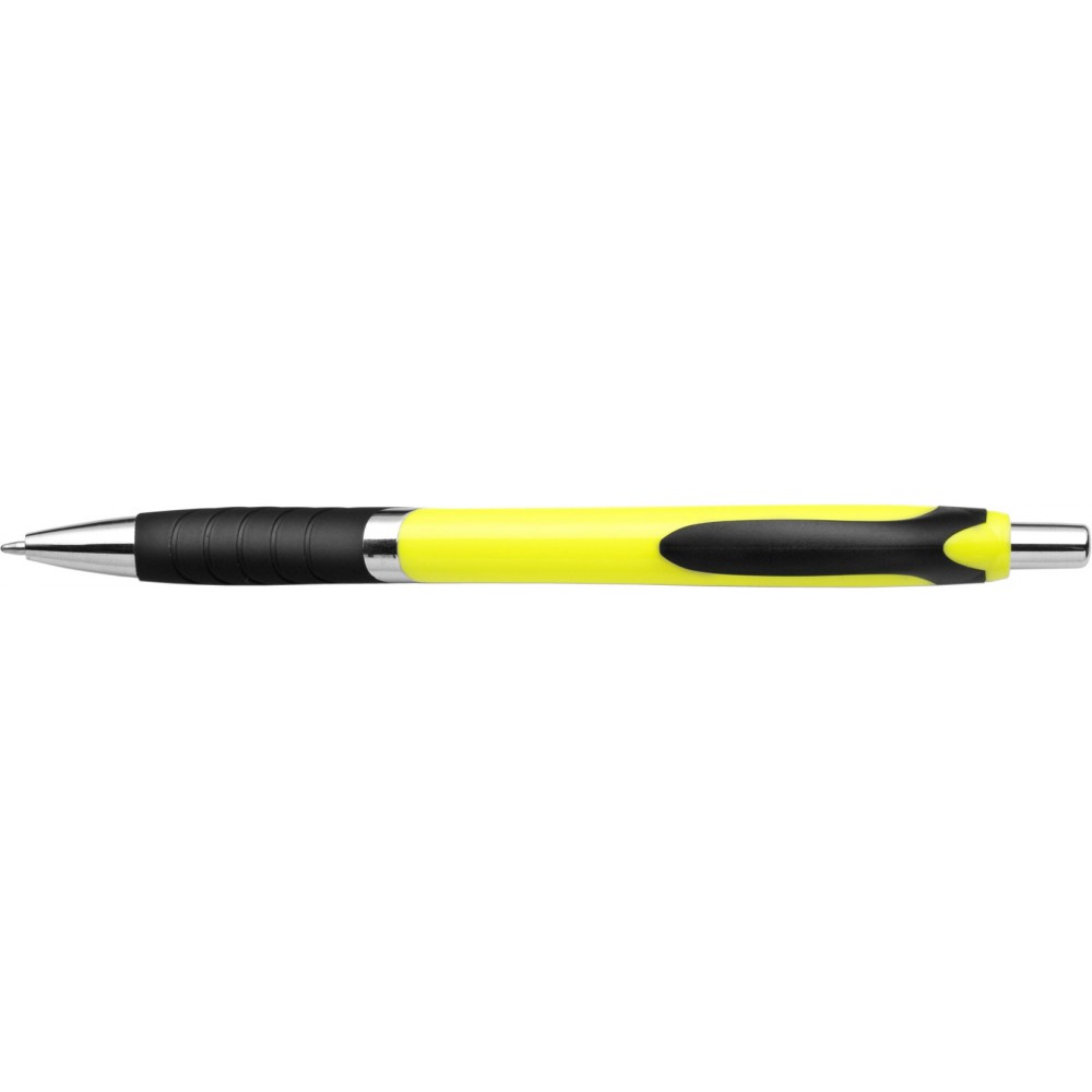 Golyóstoll gumigyűrűvel, kék tollbetéttel. Emblémázás: Tamponnyomás, UV nyomtatás