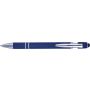 Golyóstoll kék tollbetéttel, gumis felülettel és érintővel kapacitív képernyőkhöz. Kék tollbetéttel. A hegy és a klipsz ezüst színű műanyag. ABS, alumínium. Emblémázás: Gravírozás, UV nyomtatás