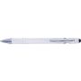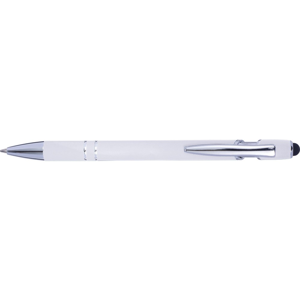 Golyóstoll kék tollbetéttel, gumis felülettel és érintővel kapacitív képernyőkhöz. Kék tollbetéttel. A hegy és a klipsz ezüst színű műanyag. ABS, alumínium. Emblémázás: Gravírozás, UV nyomtatás