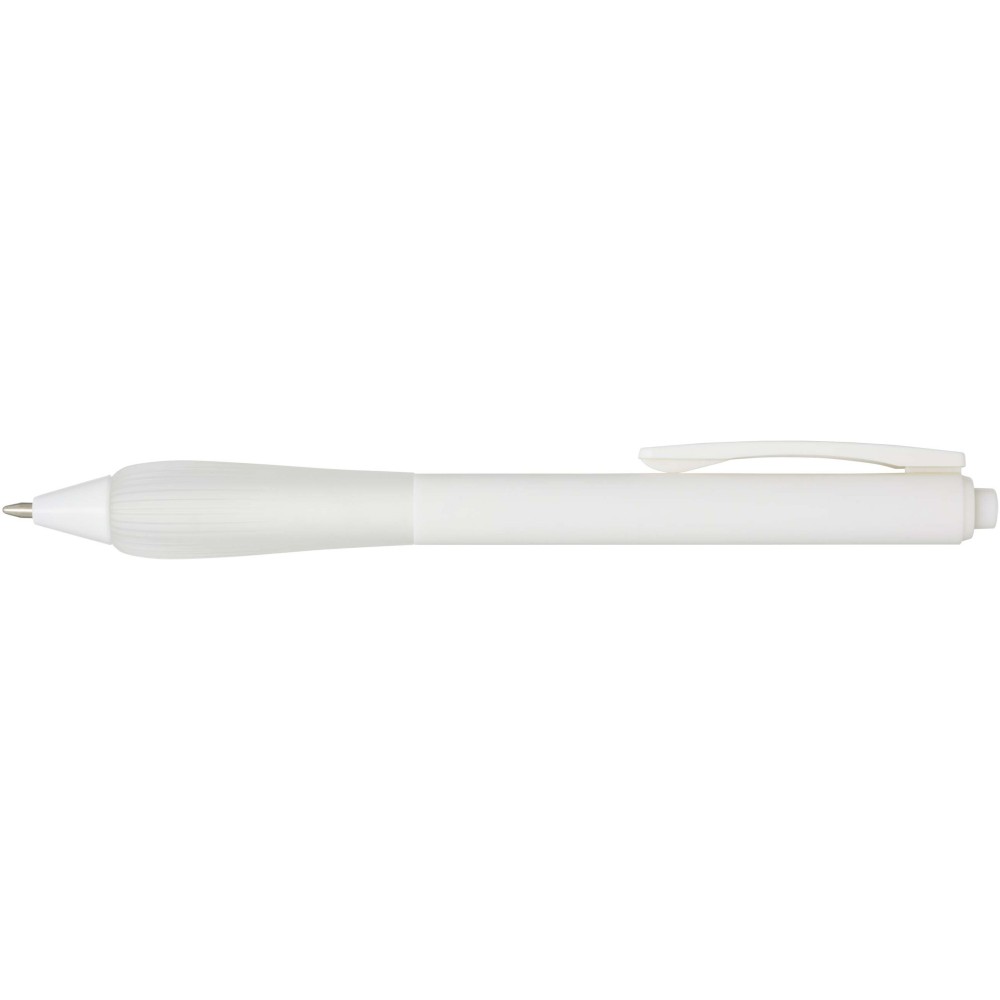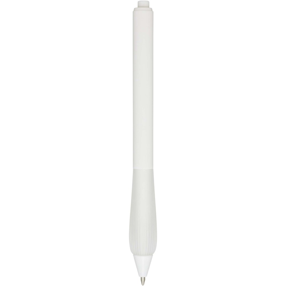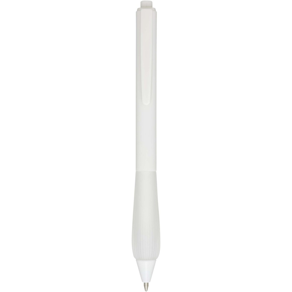 Újrahasznosított műanyag golyóstoll gumírozott tolltesttel és TPR anyagból készült fogórésszel. Kék tollbetéttel. Írási hossz: 1000 méter. Hegyméret: 1,0 mm. Emblémázás: Tamponnyomás