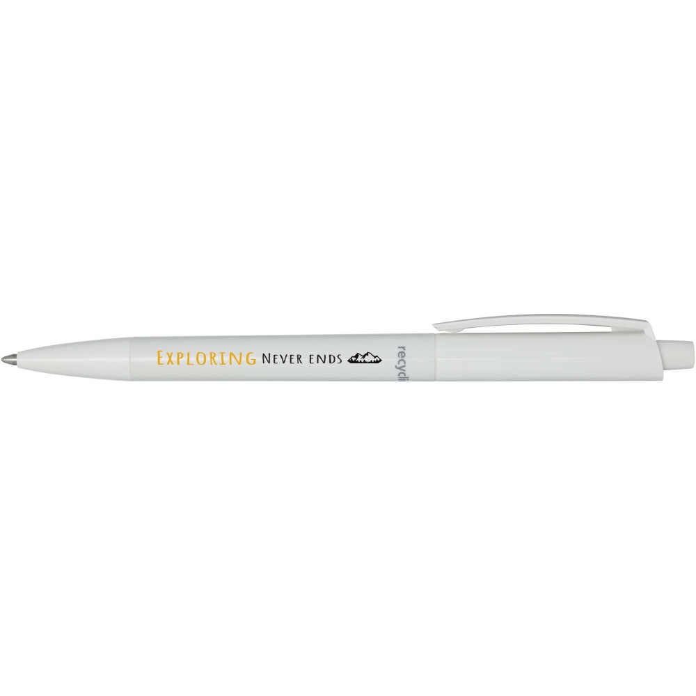 Golyóstoll, amelynek teste és klipsze újrahasznosított műanyagból, hegye pedig rozsdamentes acélból készült. Fekete tollbetéttel. Íráshossz: 3000 méter. Hegyméret: 1,00 mm. Németországban készült. Emblémázás: Tamponnyomás, UV nyomtatás
